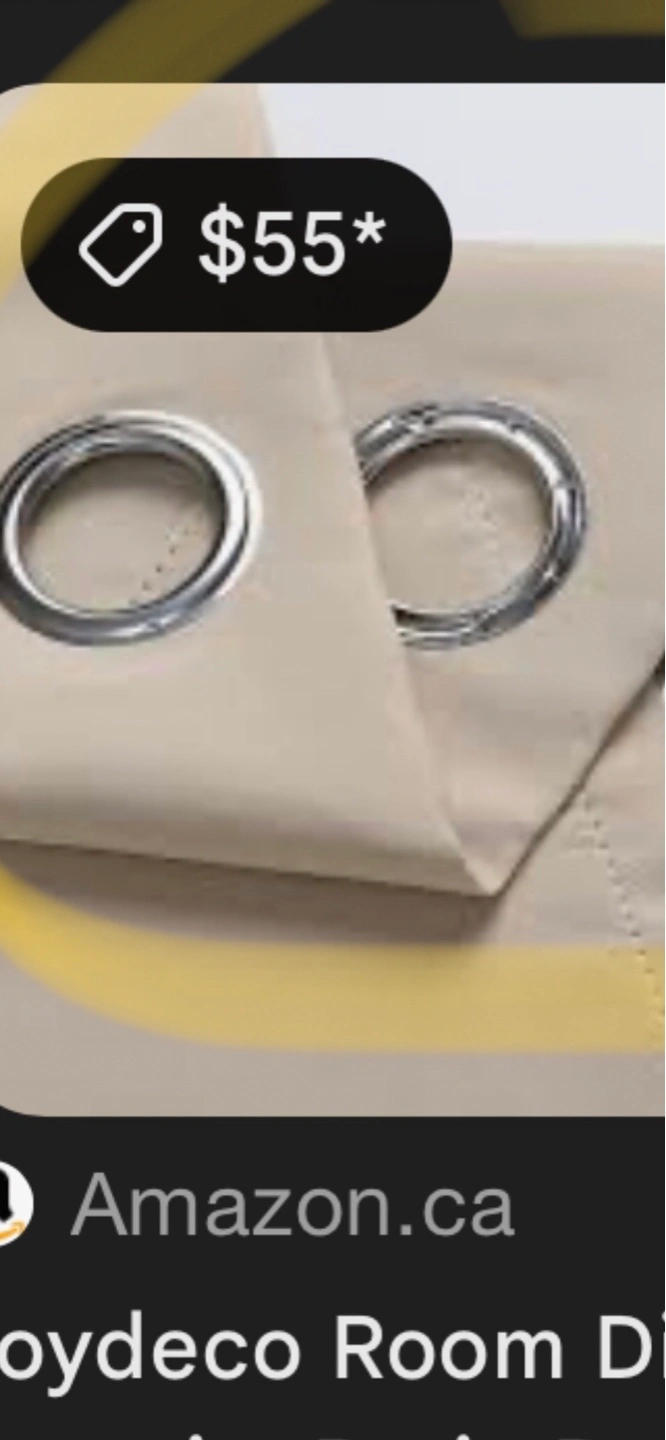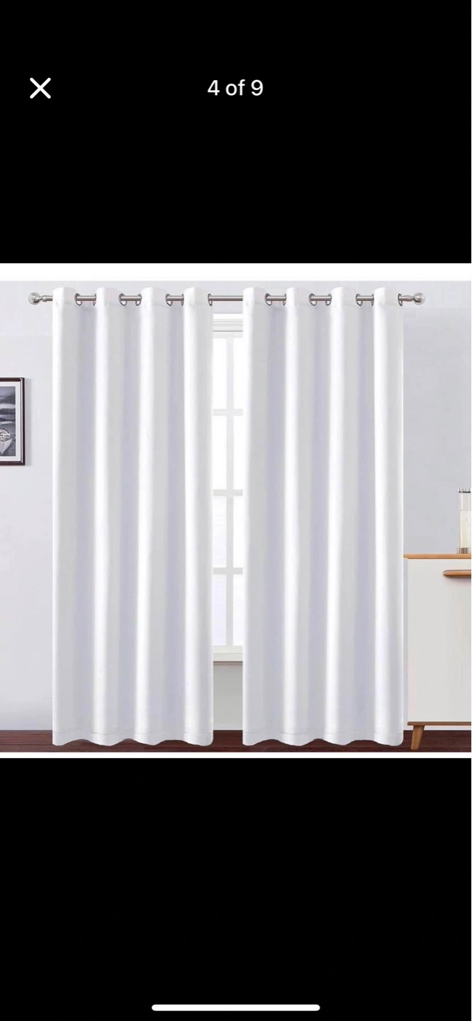 Two premium quality curtain panels. 52 inches wide, 84 inches long. White colour. Grommet top. Room darkening. Made in China. $20 each set