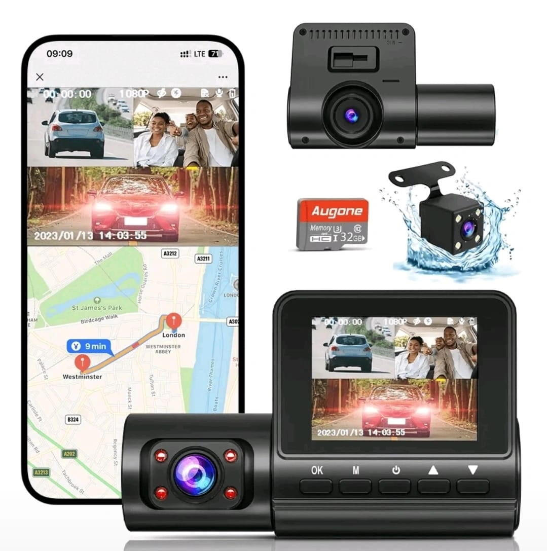 Triple Lens 4K Dash Cam with 32GB Card – 170° Wide Angle
