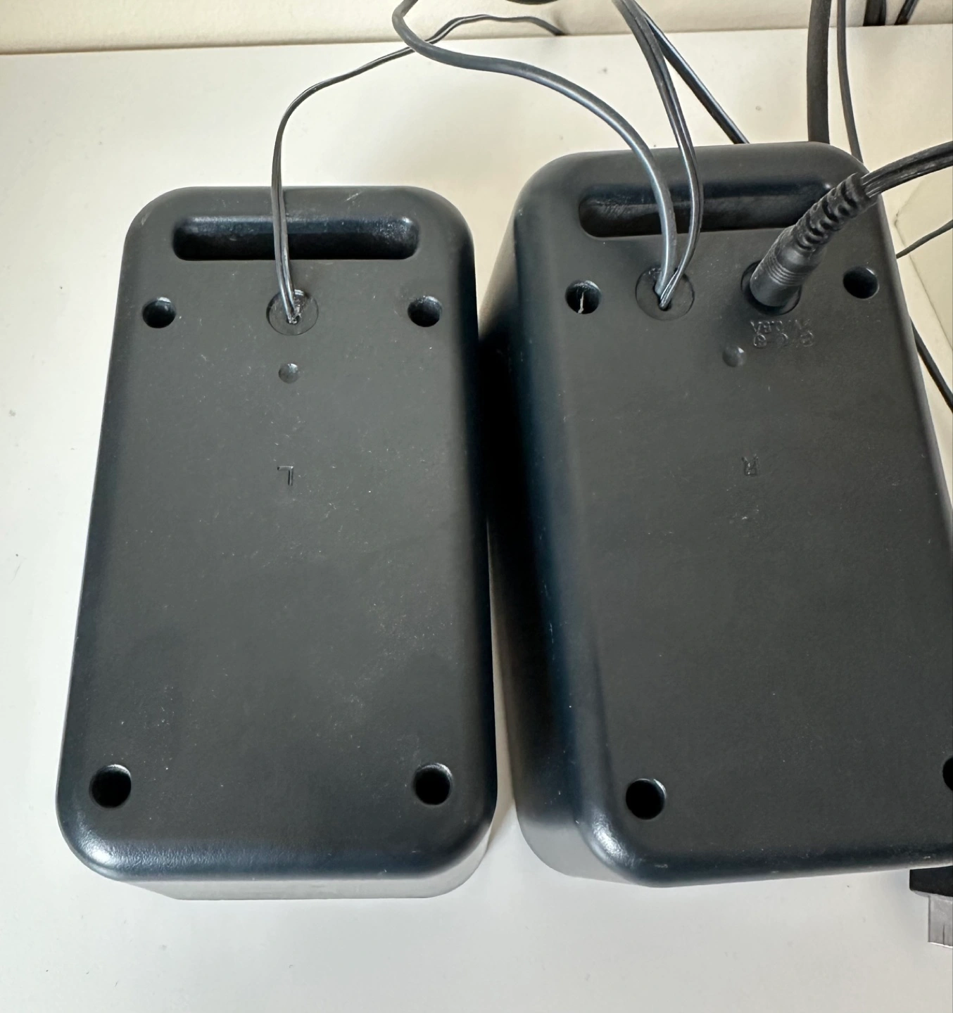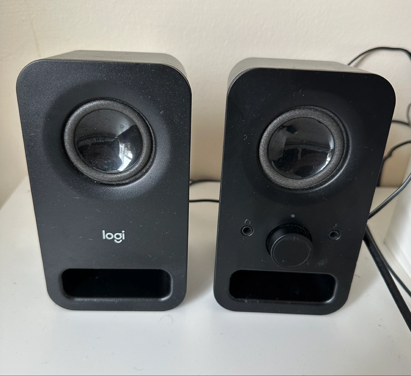 Pair of black computer speakers. Good condition. Volume control on one speaker. Wired connection.