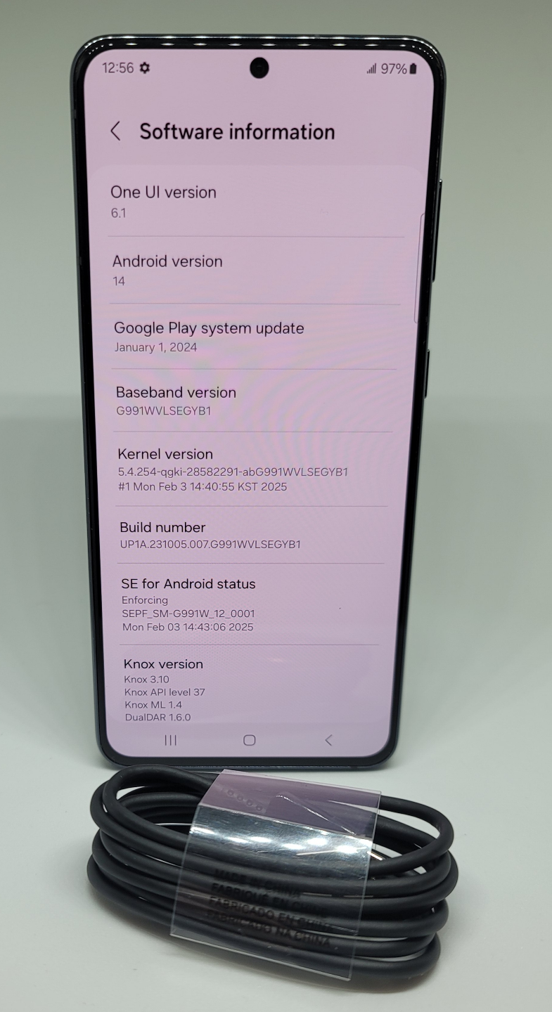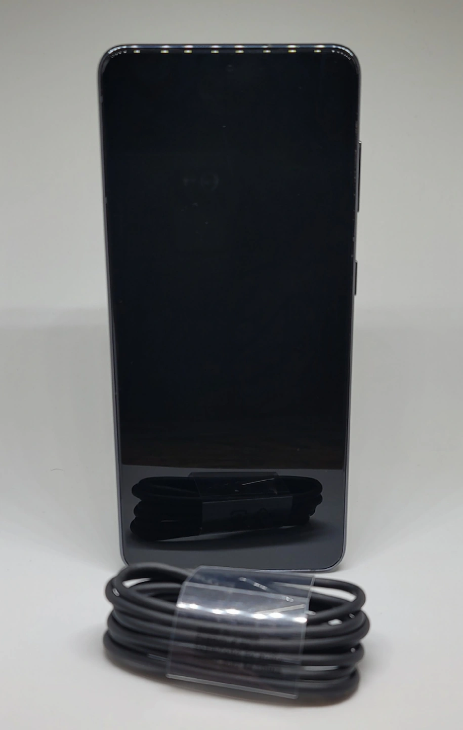 Unlocked Samsung Galaxy S21 5G smartphone. 128 GB storage. Black colour. Includes charging cable. Excellent condition.