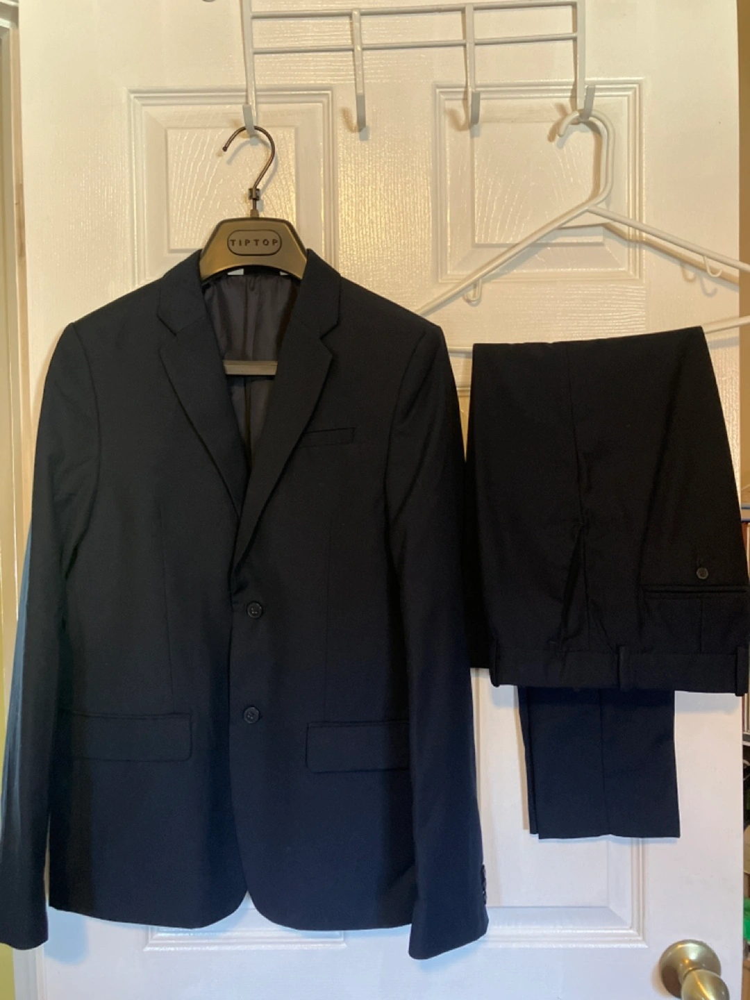 Boys Slim fit suit jacket and trousers. H&M Size 13/14 (pant length 34 inches long) Two button closure. Flat front trousers. Excellent for formal occasions. Used once, excellent condition. Pickup only