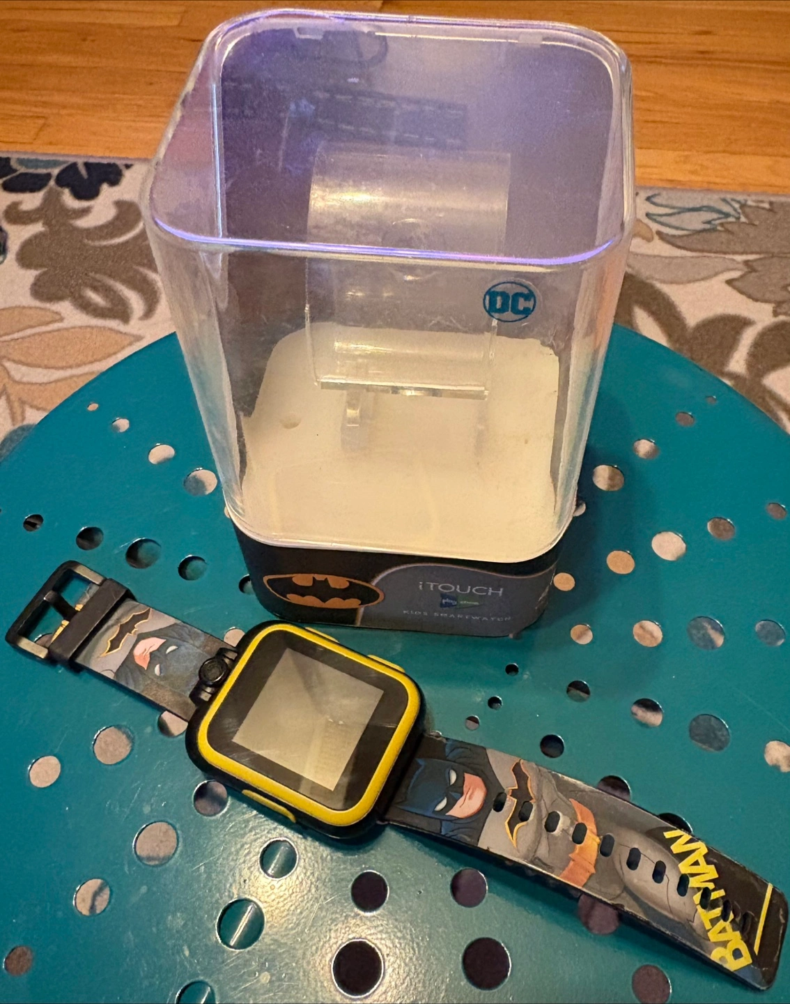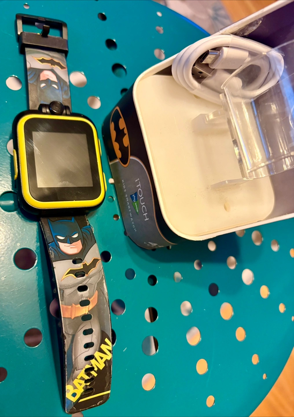 Kids smartwatch. Batman design. Features include games, photos, videos, and more. Includes charging cable. Box included, barely used .