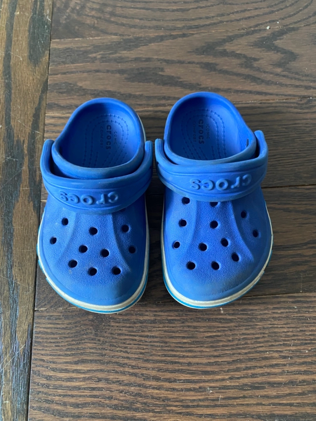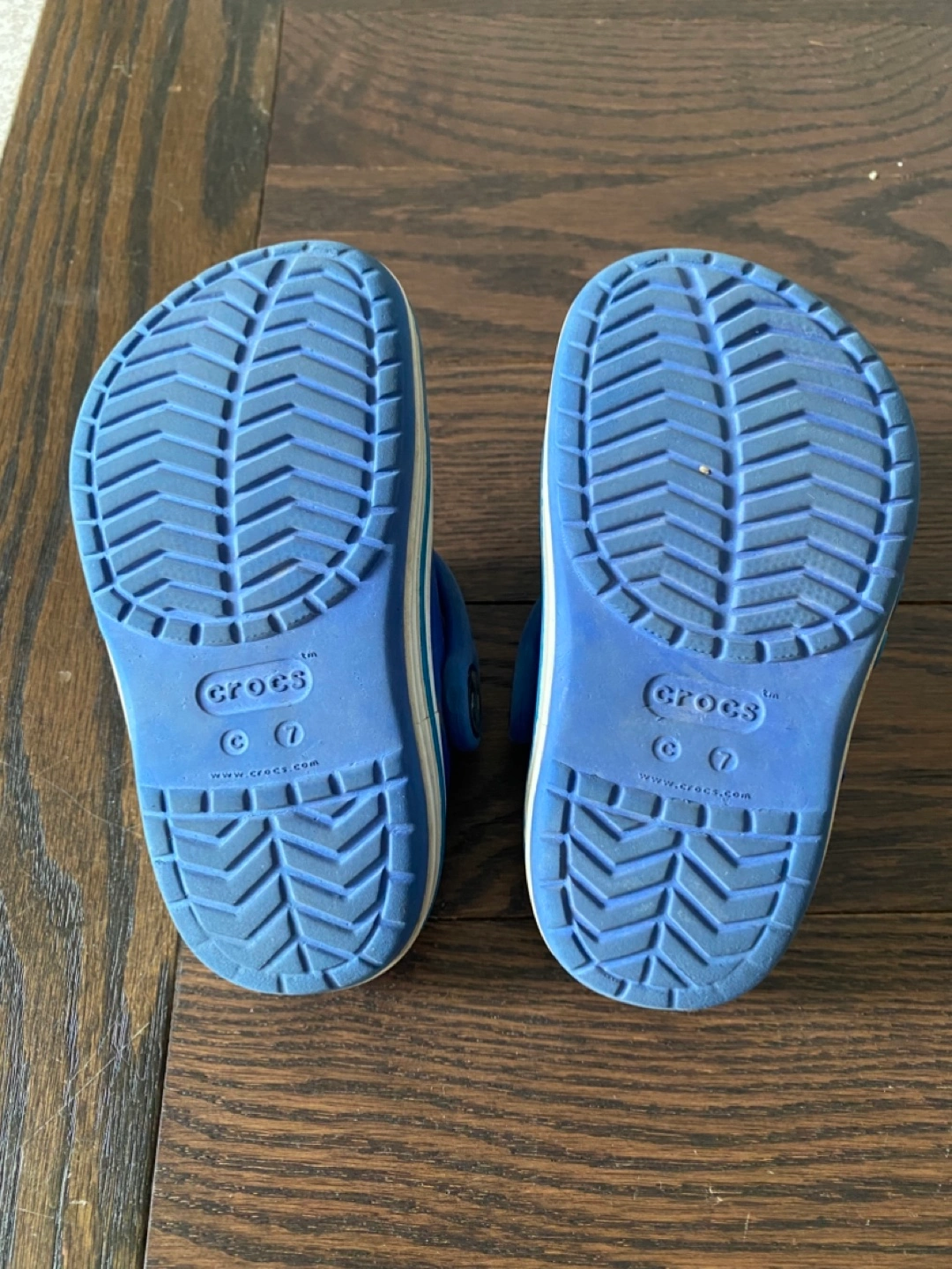 Pair of toddler Crocs. Blue with white trim. Size C7. Pre-owned.
