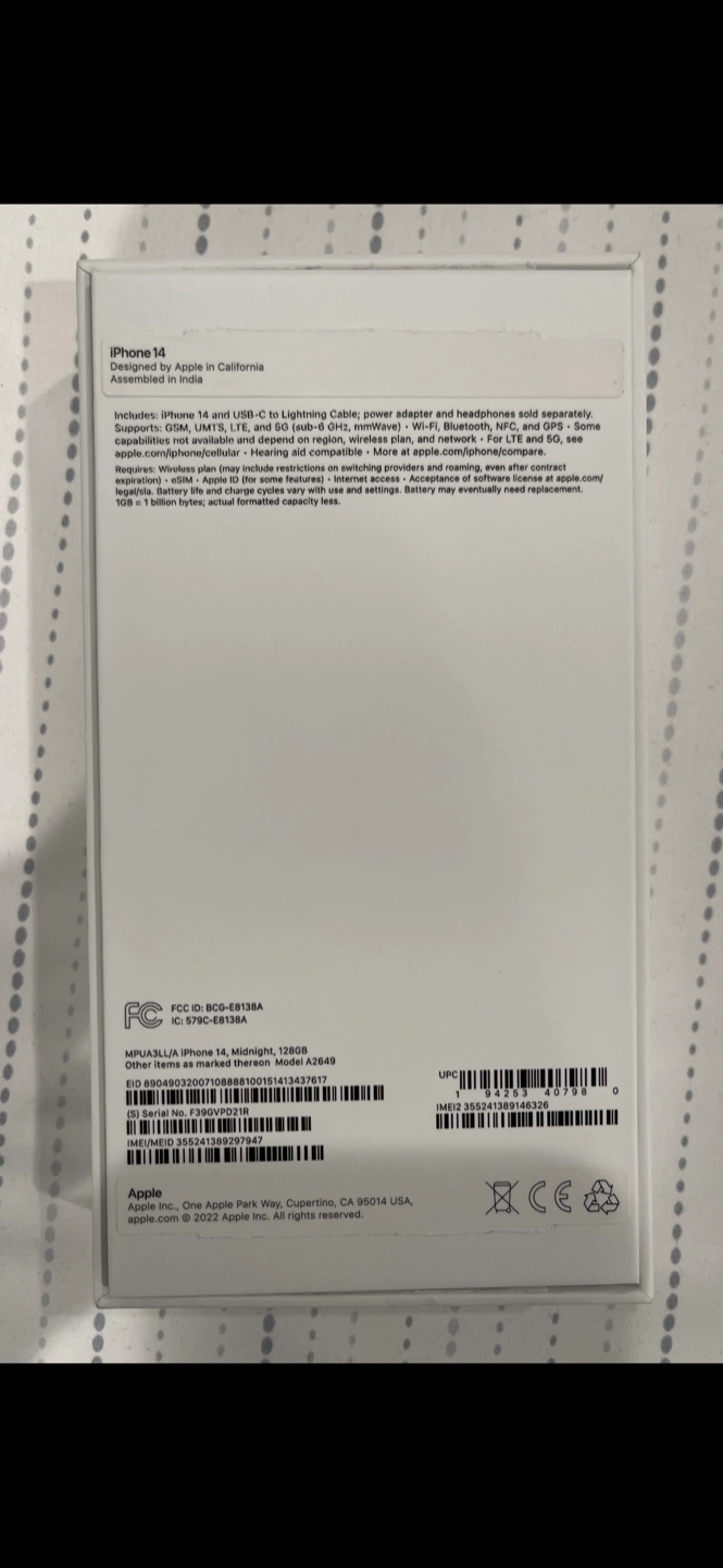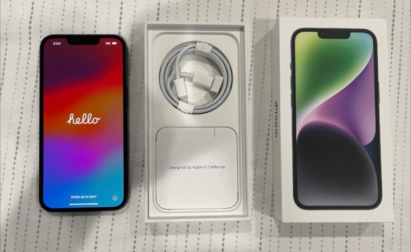 Includes iPhone 14 and USB-C to Lightning Cable.