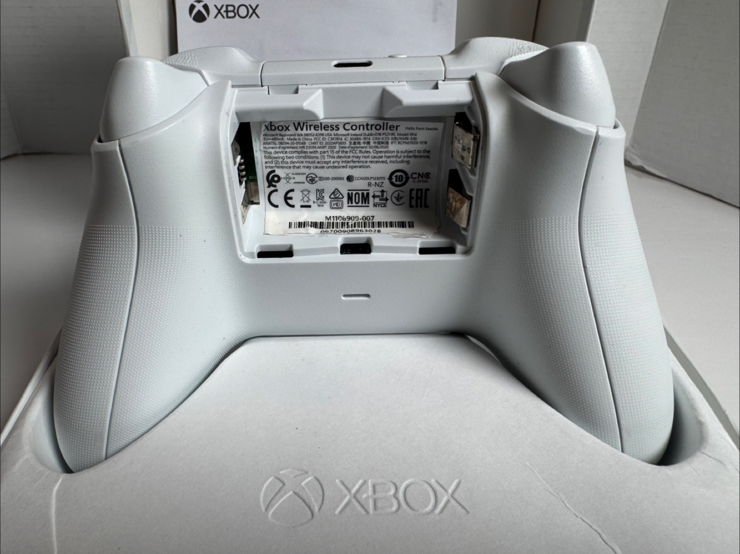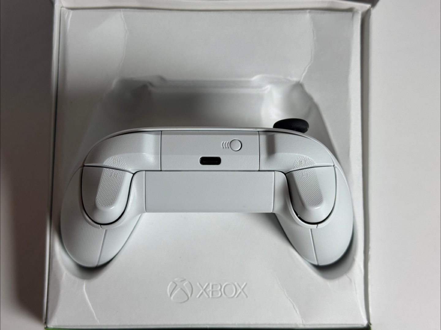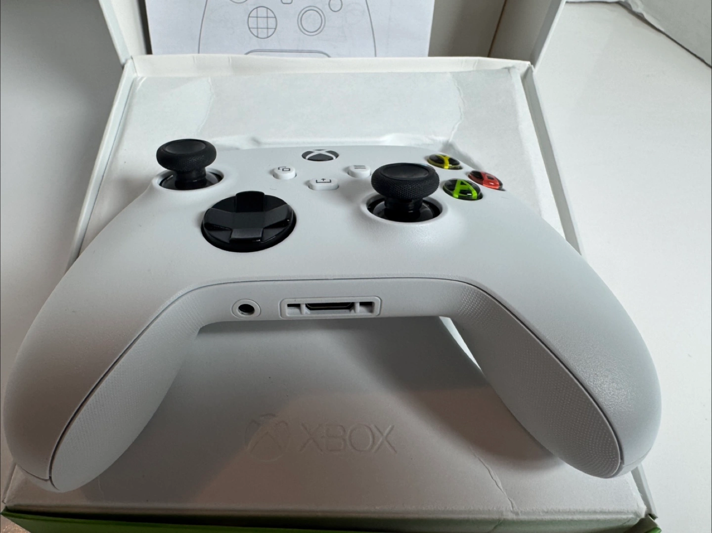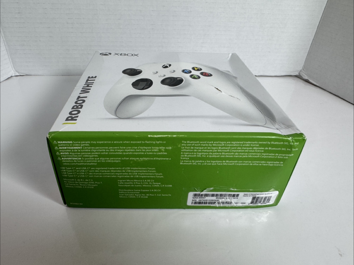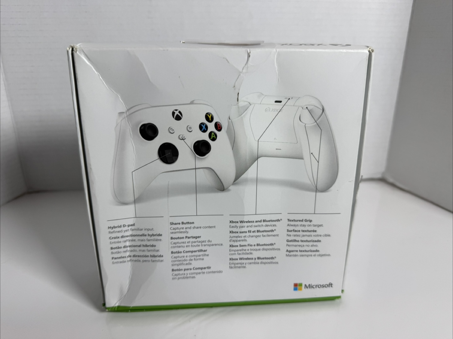 Robot White Xbox Wireless Controller. Features textured grip and share button. Includes Bluetooth functionality. Comes in original packaging.