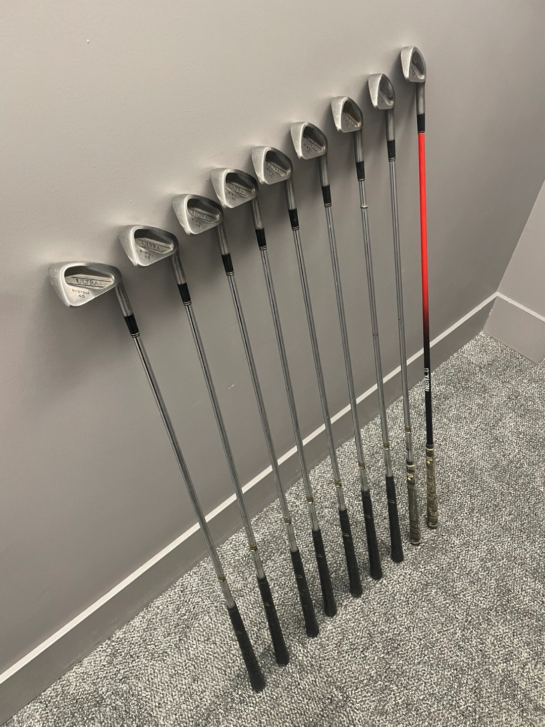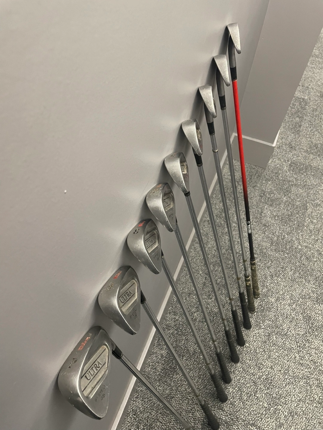 Complete set of Wilson Ultra irons, includes 2 through pitching wedge (2, 3, 4, 5, 6, 7, 8, 9, PW). Great condition and perfect for beginners or casual players looking for a full iron set. Durable steel shafts and classic cavity-back design for forgiveness and consistency.