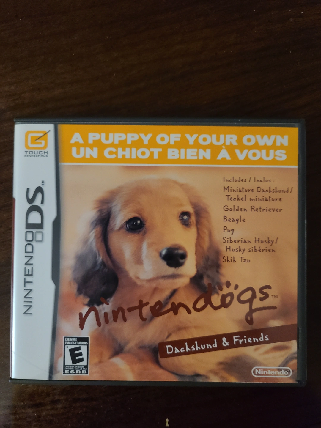 Two Nintendo DS games: Nintendogs Dachshund & Friends and Brain Age 2. Pre-owned. Includes various dog breeds in Nintendogs. Brain Age 2 offers brain training exercises.