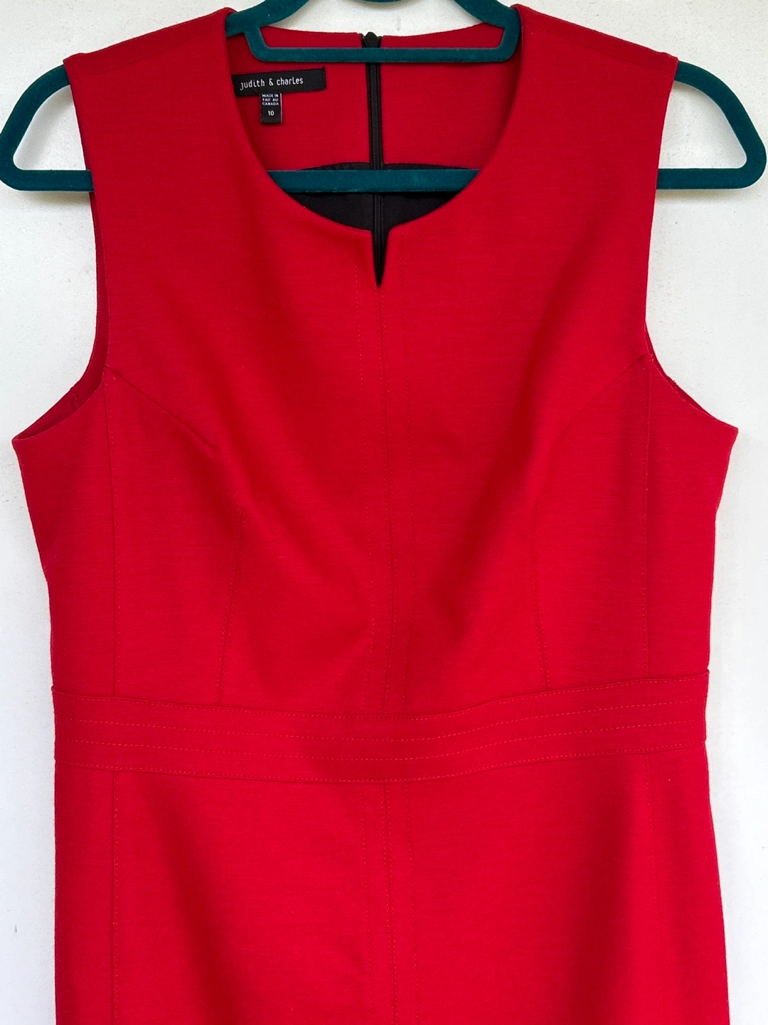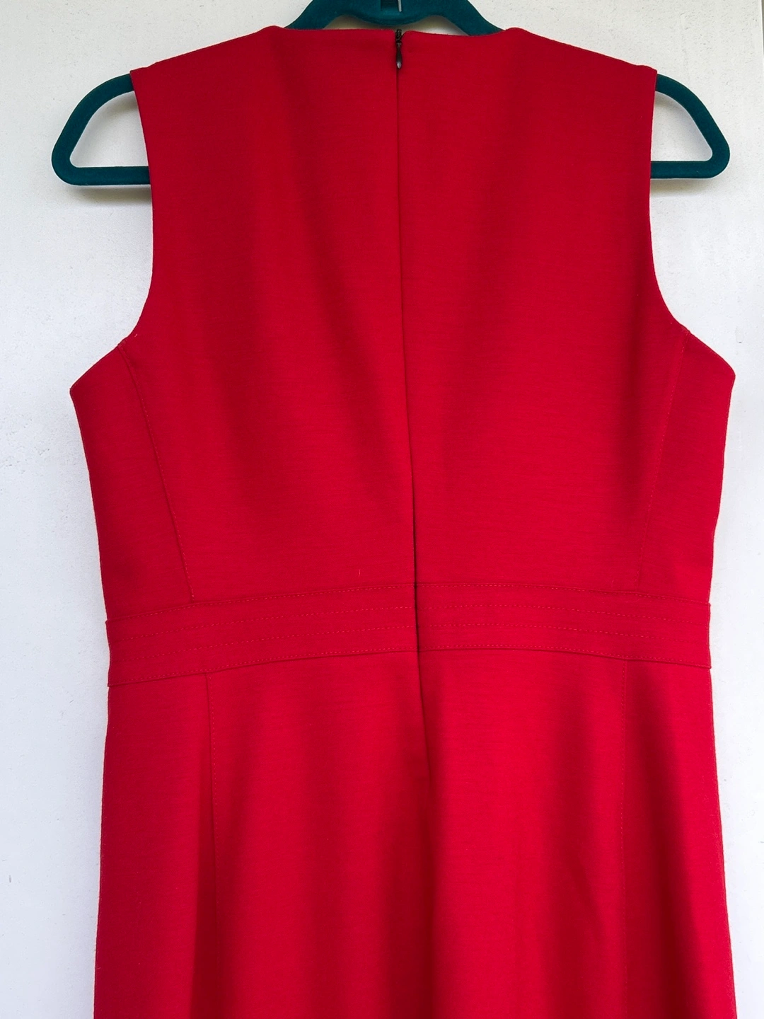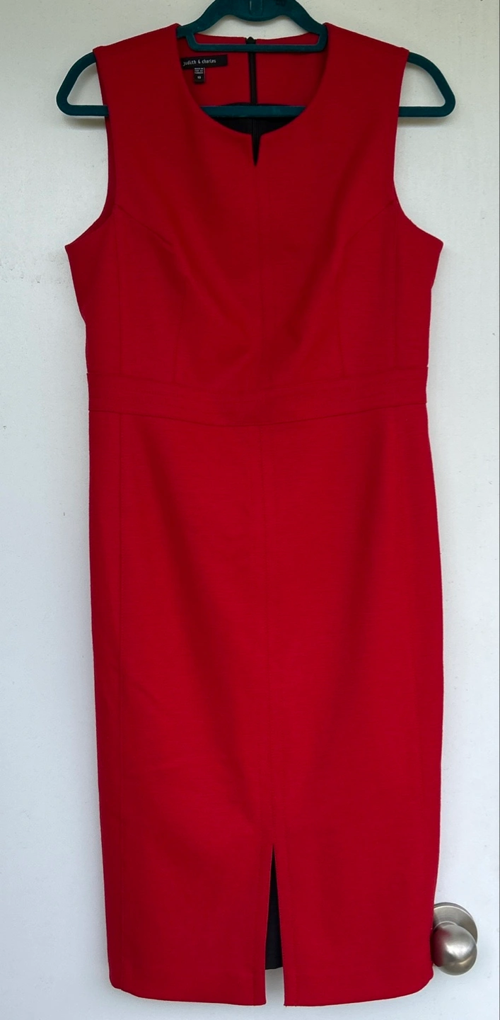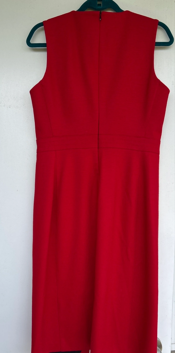 1000+Sleek red midi dress. Sleeveless, fitted silhouette. Centre back zip. Subtle V-neck. A-line skirt. Side slit. Perfect for work or a special occasion. Excellent condition and a very good quality dress. Only worn few times. Make sure to check all photos attached. Smoke/Pet free home. Cash & Pick Up only please.