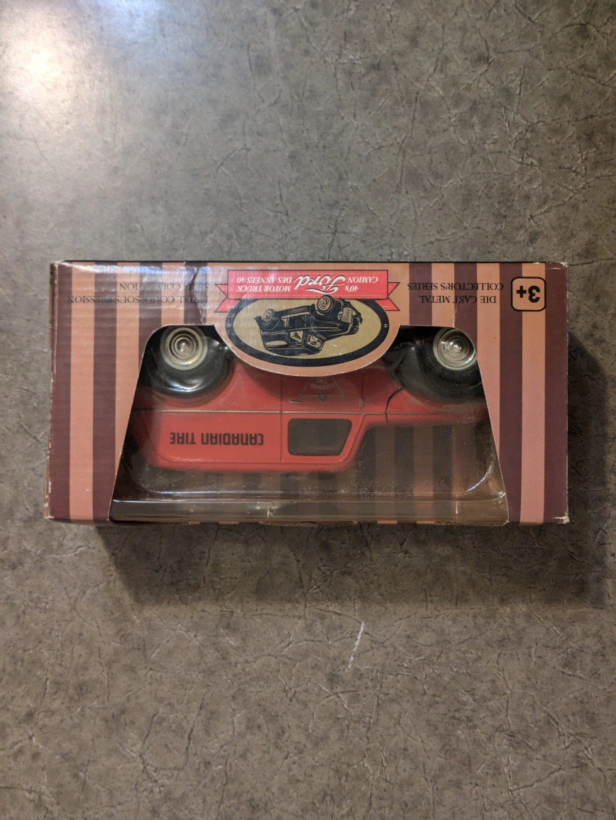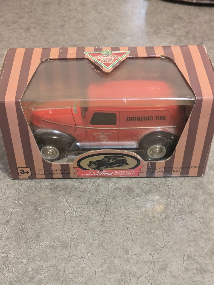 Die cast metal collectible model of a Canadian Tire Ford Motor Truck. Part of a collector's series. In original packaging. Looks to be in great condition.
