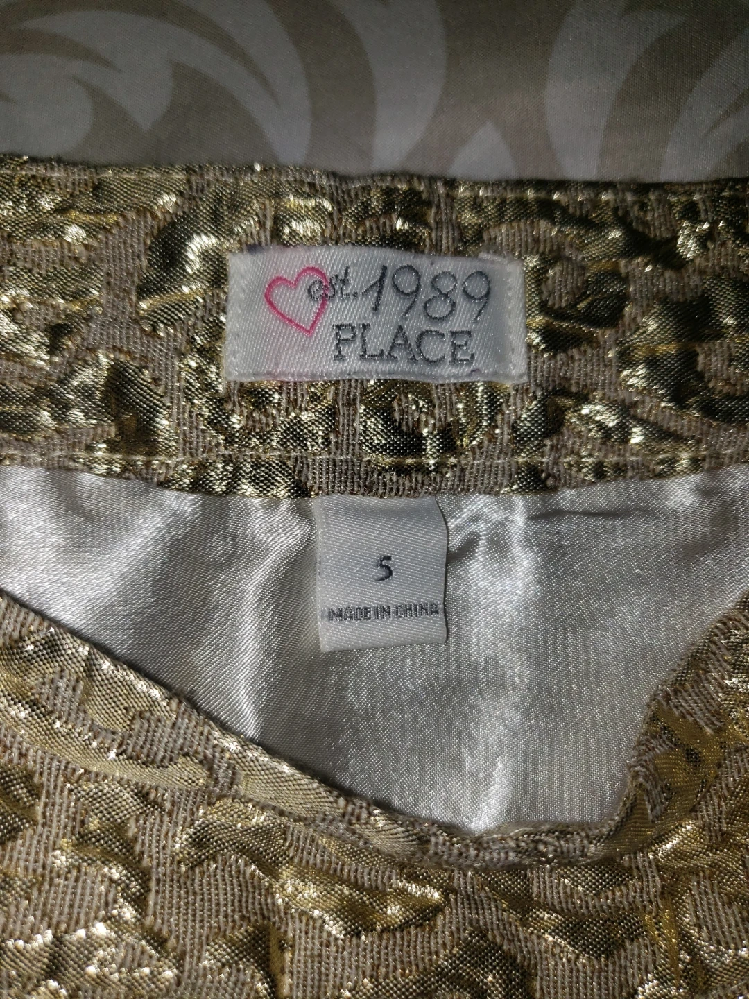 Girls Gold Brocade Mini Skirt Size 5