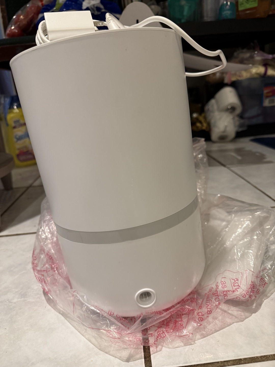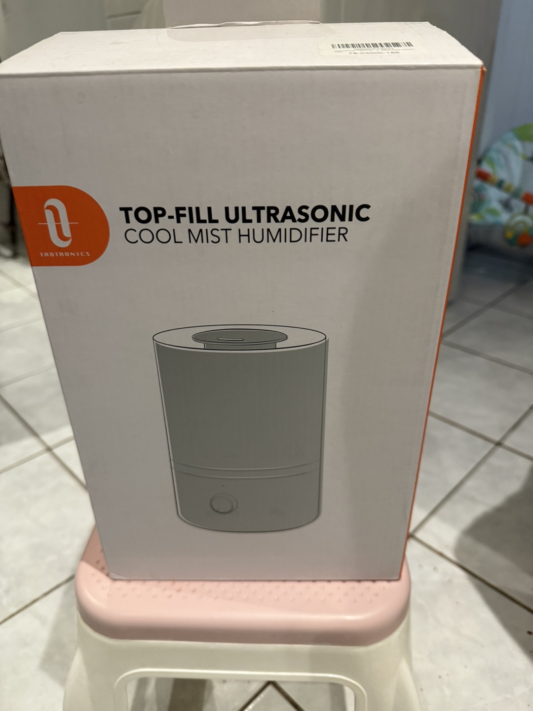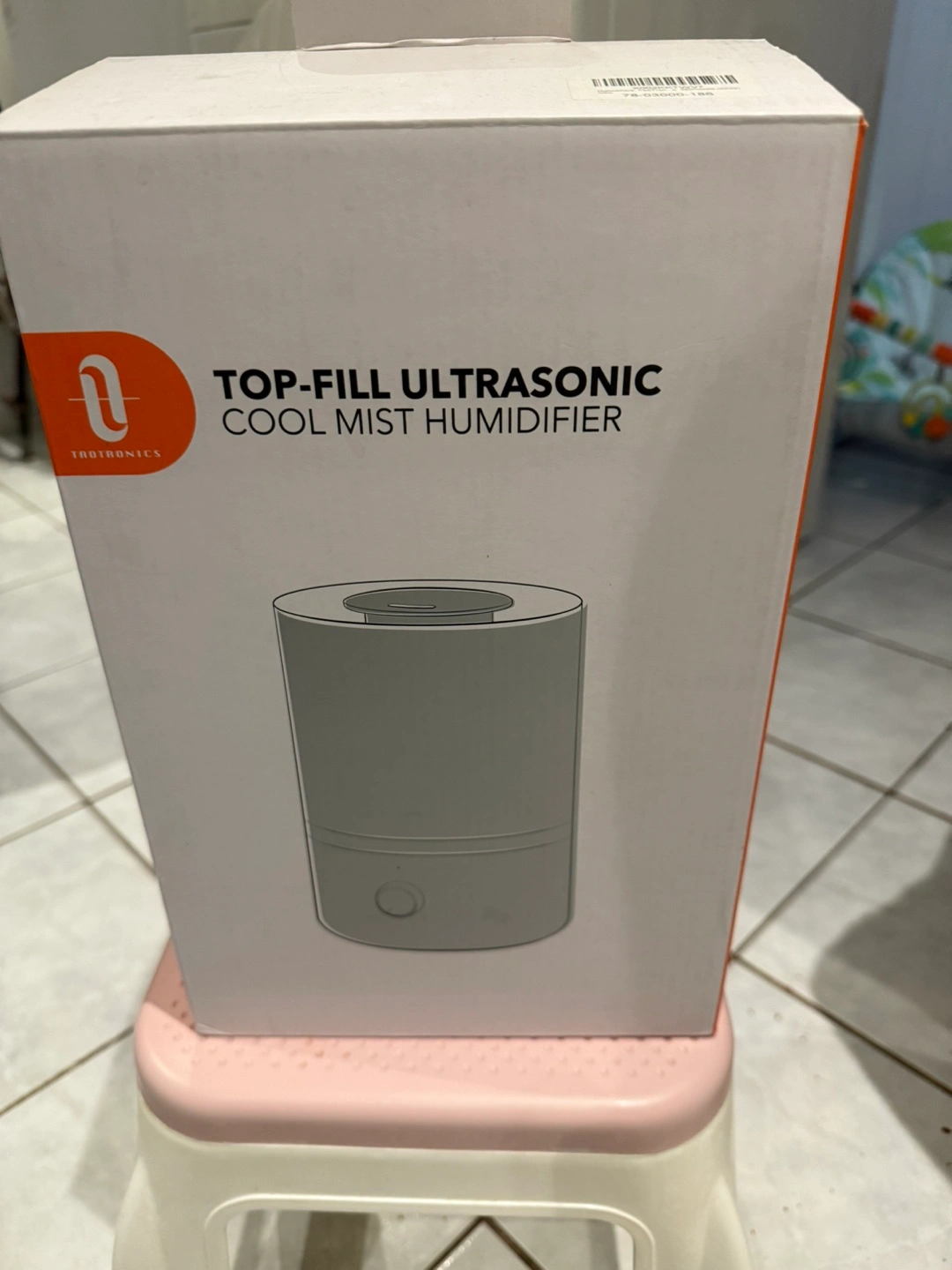 Top-fill ultrasonic cool mist humidifier. New in box. White. Includes power cord.