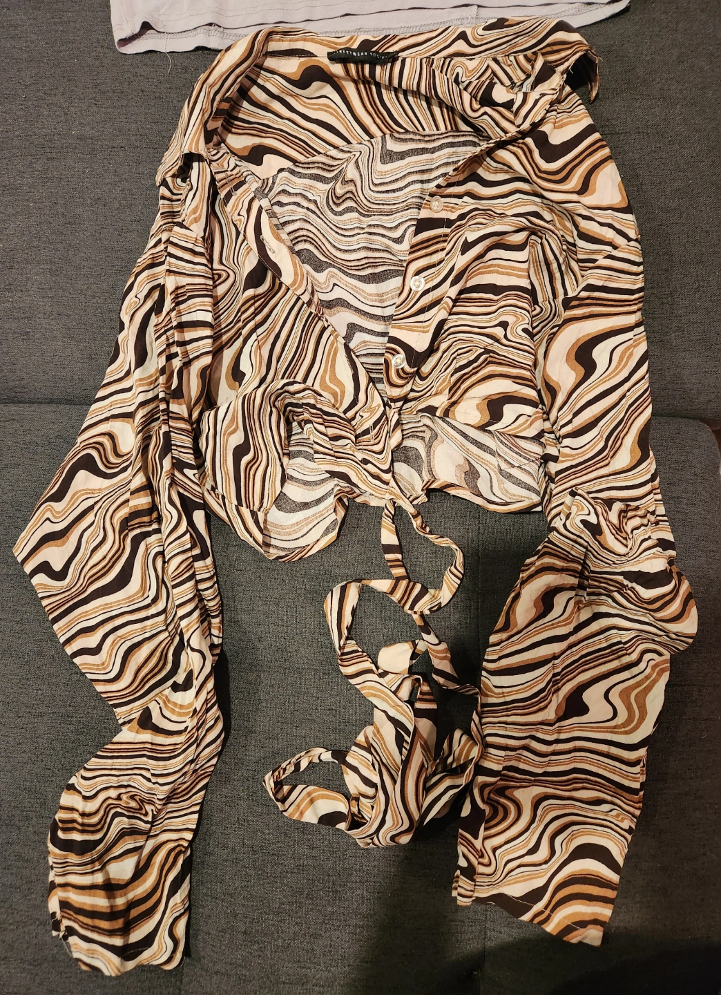 Brown button up mid top is brand new and never worn. Missing tag, though.