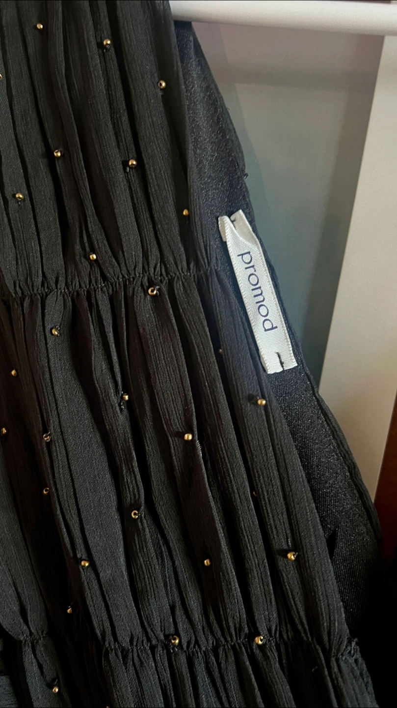 Black Promod Sleeveless Dress with Gold Beading