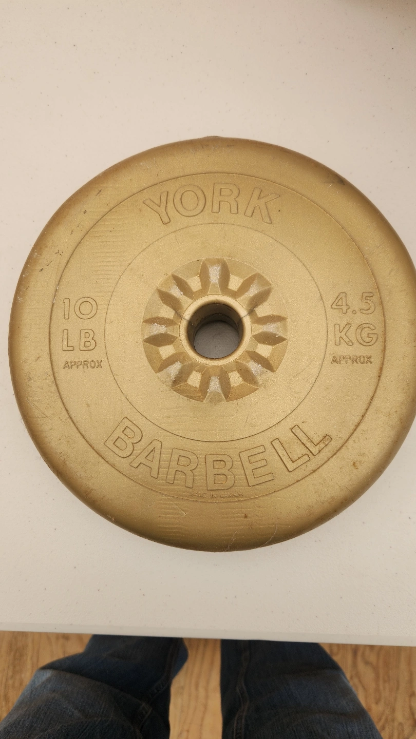 Buy & SellYork Barbell 10lb Weight PlateYork Barbell 10lb Weight Plate$4Gold-coloured 10lb York barbell weight plate. Approximately 4.5kg. Made in Taiwan.ConditionGoodWHERE TO MEETCheck LocationView MapSELLERRayBarrhaven855 reviews0 chats·0 favorites·5 viewsSEND CHAT TO SELLERHi Ray! I’m interested in your listing.Hi Ray! I’m interested in your listing.Get the Karrot app to chatSign In to chat
