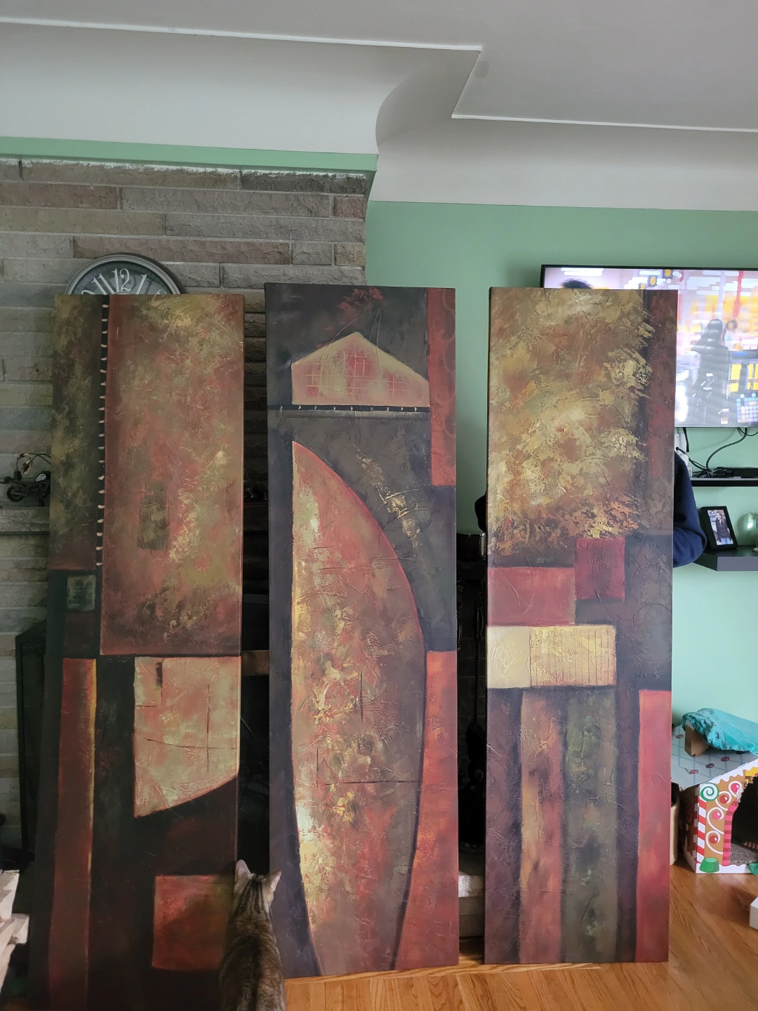 Set of three large canvas prints. Abstract design in earth tones. Modern style. Good for a large wall.Pick up lower Stoney Creek