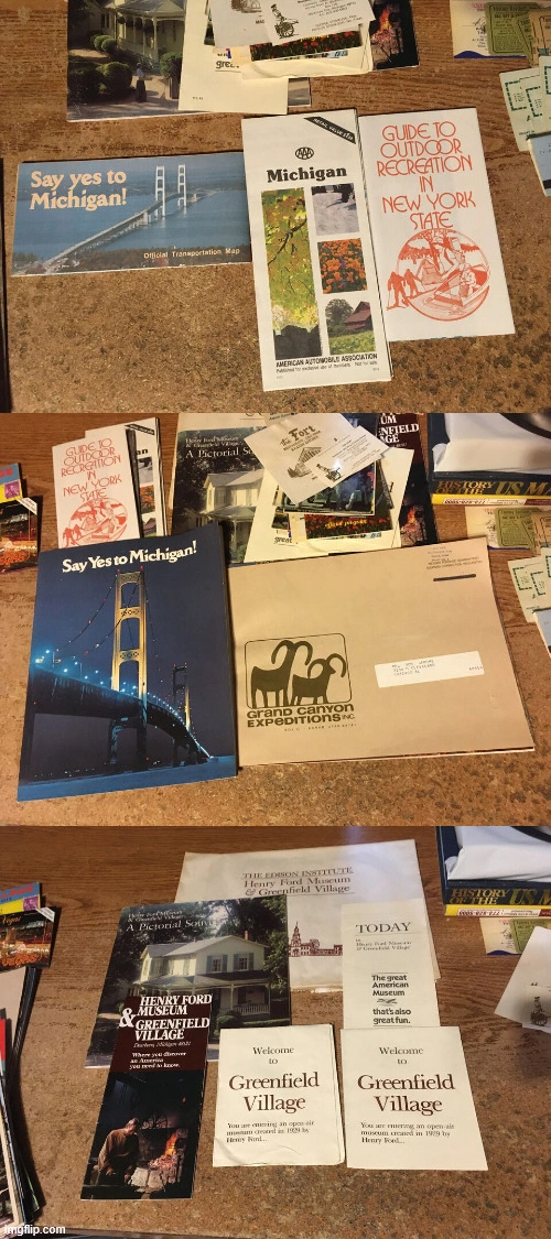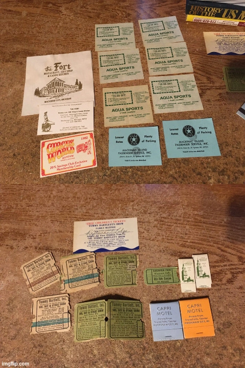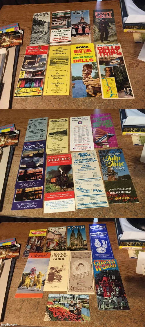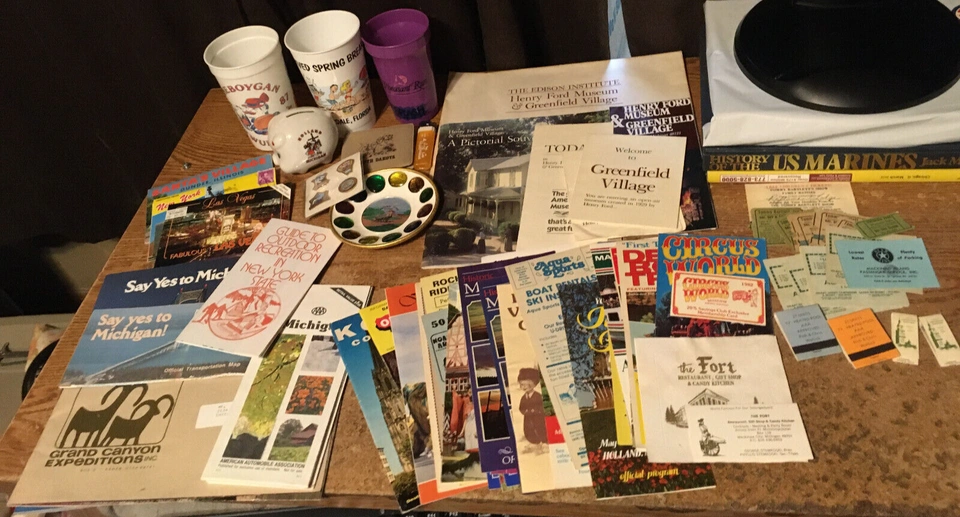 huge lot of guides brochures cups and other things mostly from Wisconsin dells Holland Michigan Tommy Bart watch show Greenfield village with some other guides and oddities from Vegas. pick up at house