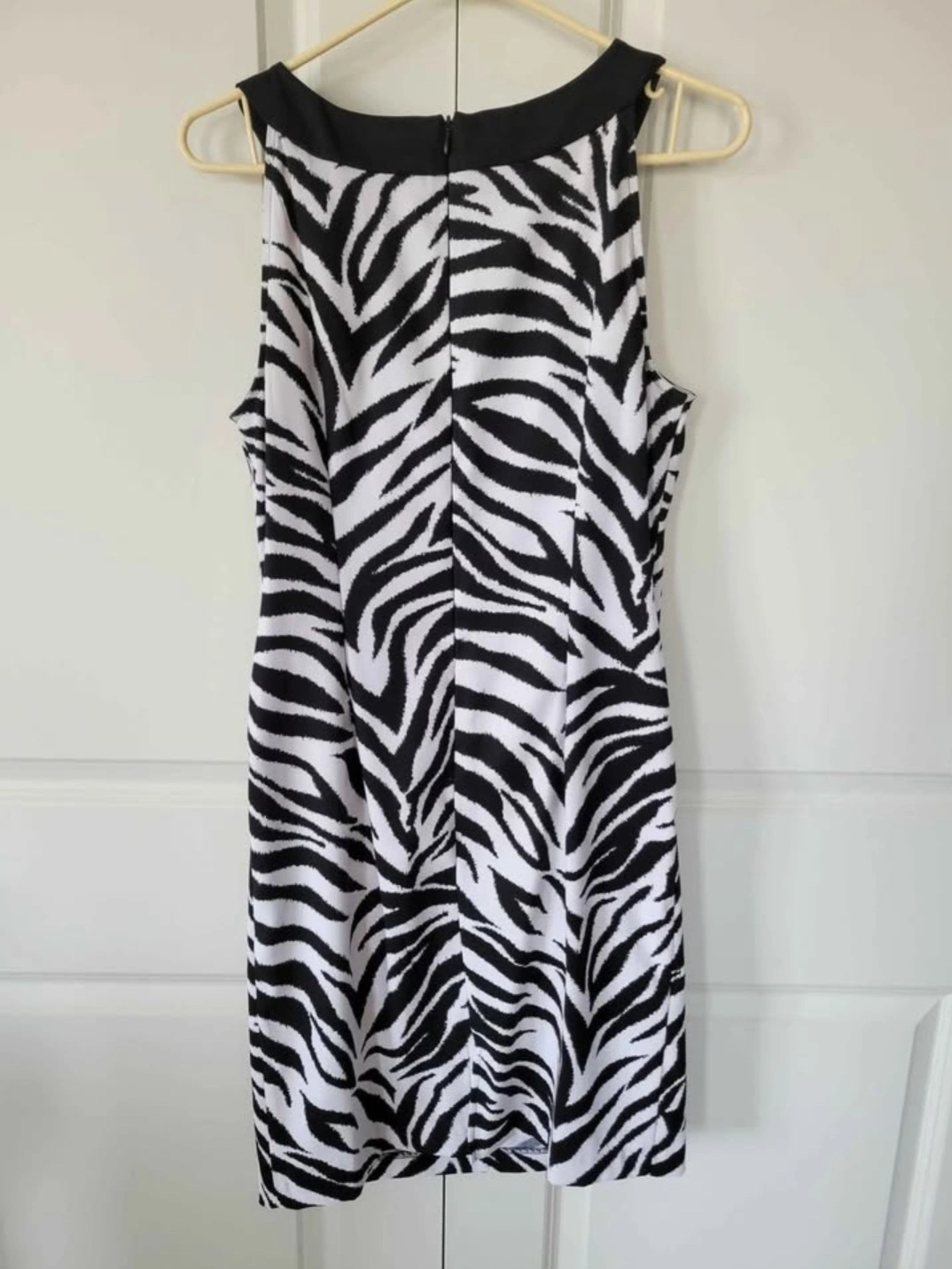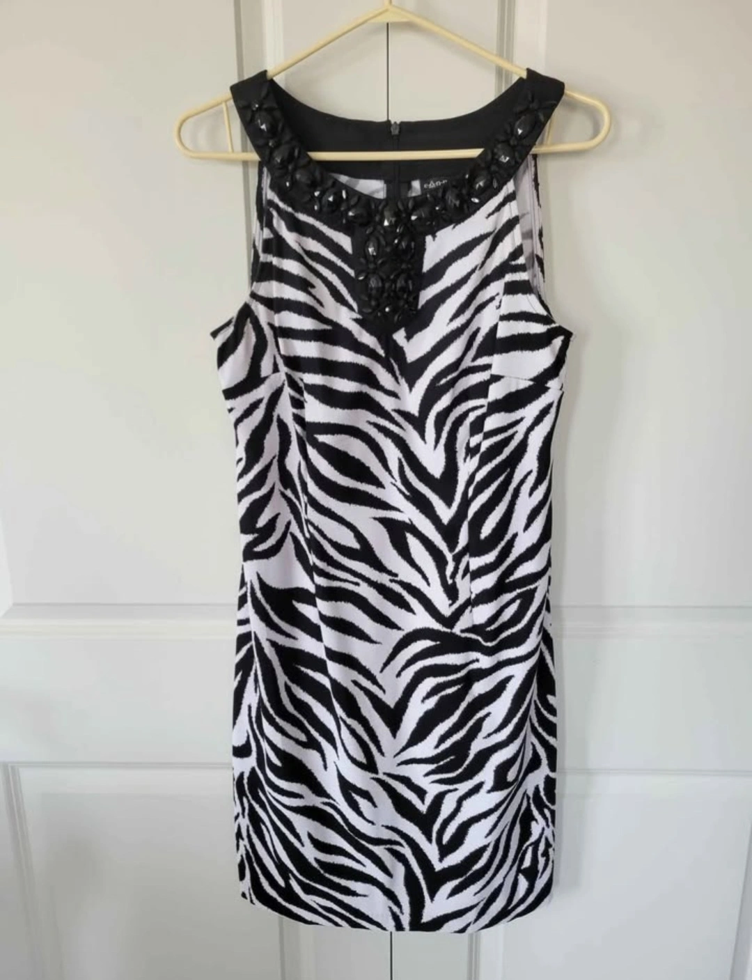 Stunning black and white zebra print dress. Features a sleeveless design and a beautiful beaded neckline. pick up near Fanshawe and Highbury