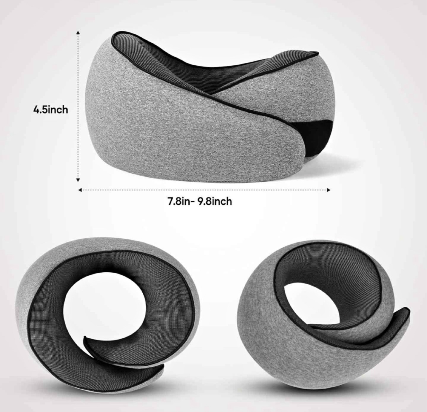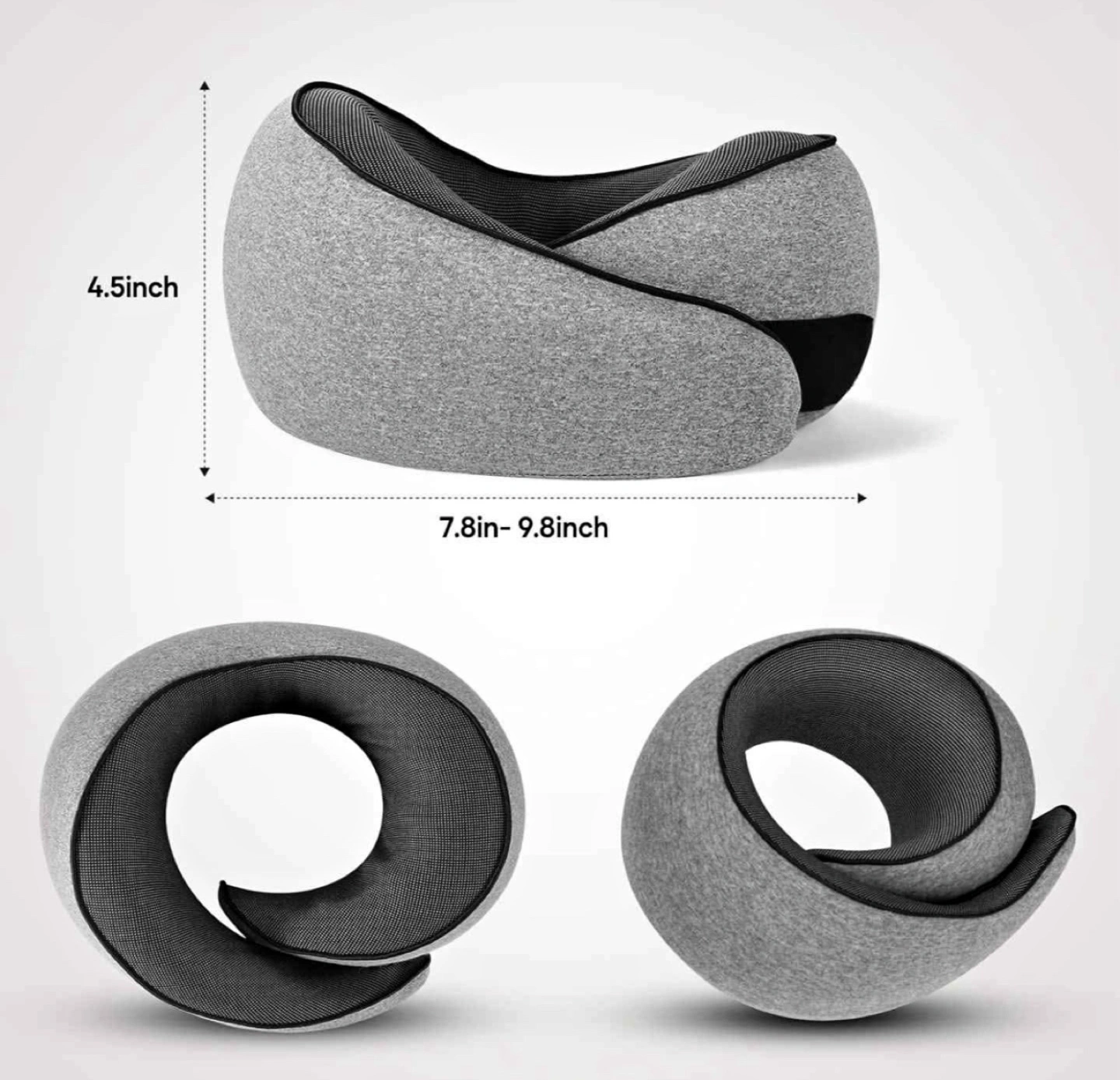 Comfortable travel pillow. Memory foam filling. Includes convenient carrying bag. 360° support. Grey and black.
