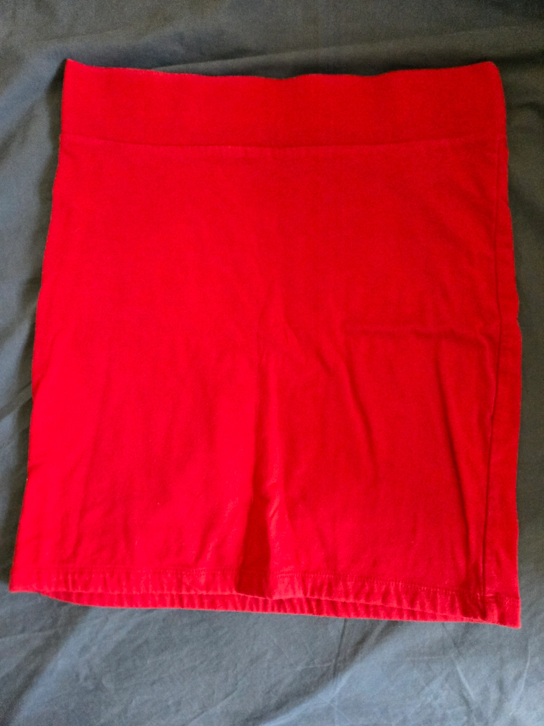 Women's red mini skirt. Simple design, solid colour. Elastic waistband. Great for casual wear.