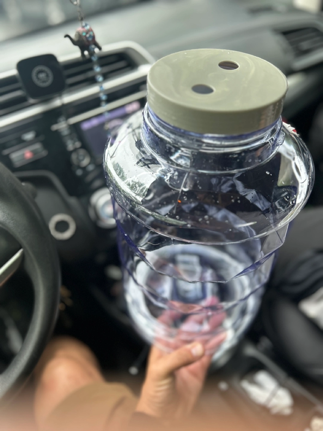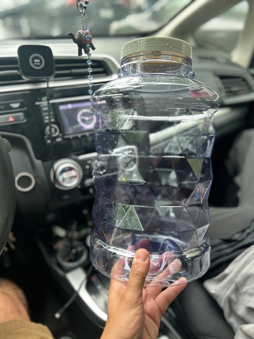 245Large capacity jar. Clear plastic construction. Geometric design. Screw-on lid with two small holes. Perfect for storage or organization.