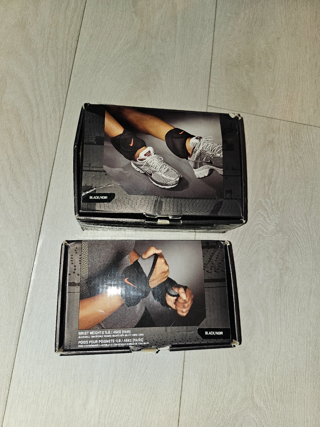 Workout bundle includes Nike wrist weights, Nike ankle weights, and 3lb dumbbells. Great for home workouts.