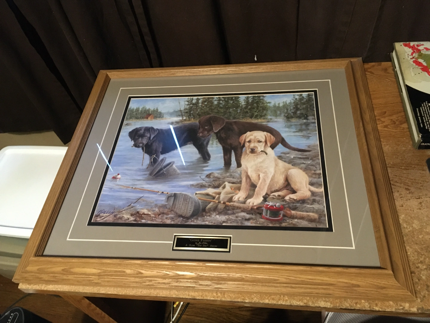 Uline Top Dog Series Framed signed Print - Gone Fishin'