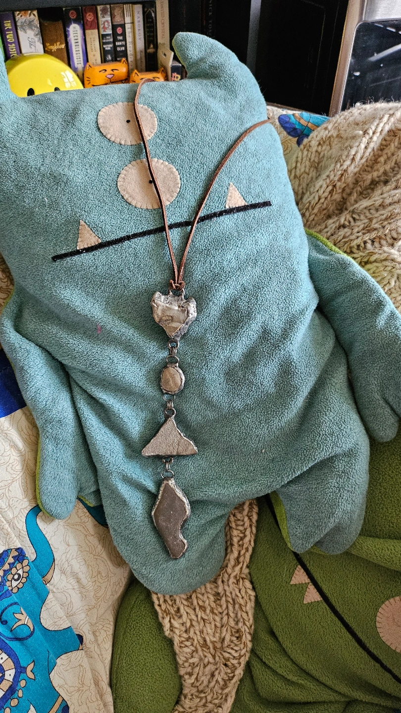 MAKE OFFER! Unique Stone and Pewter Pendant Necklace
