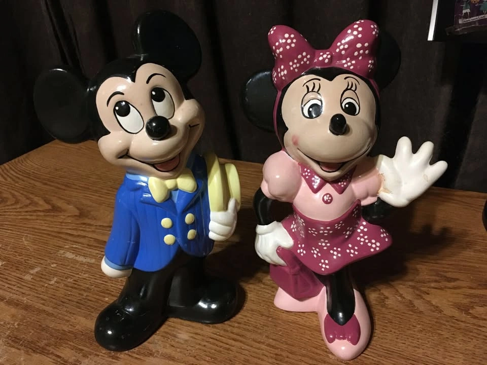 Vintage Mickey and Minnie Mouse Figurines blue suit pink dress