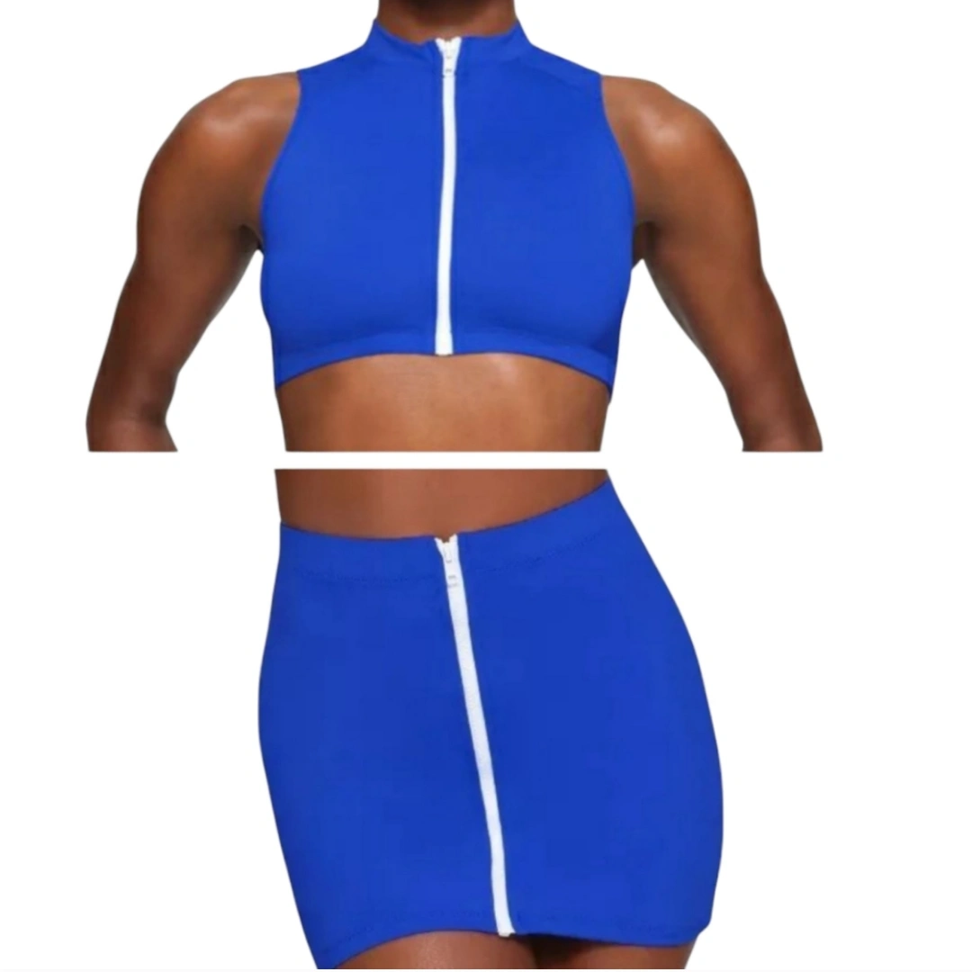 SKIMS 2 PC Swim Sporty Zipper Top & Mini Skirt.