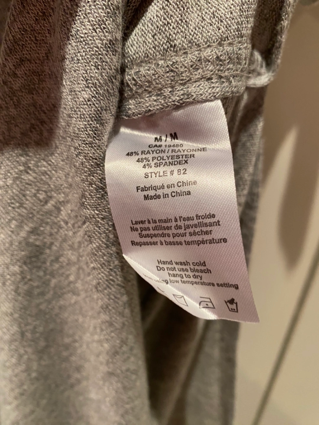 Size M. 48% rayon, 48% poly, 4% spandex. Super soft and lightweight. Great condition!