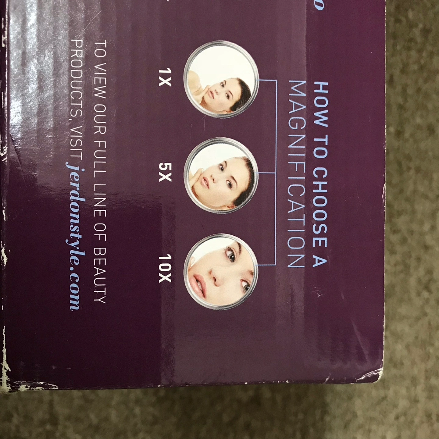 8.5" diameter mirror. Chrome finish. 1x & 8x magnification. Swivels 360°. Extends 13.5" from the wall. Fog free. New in box.