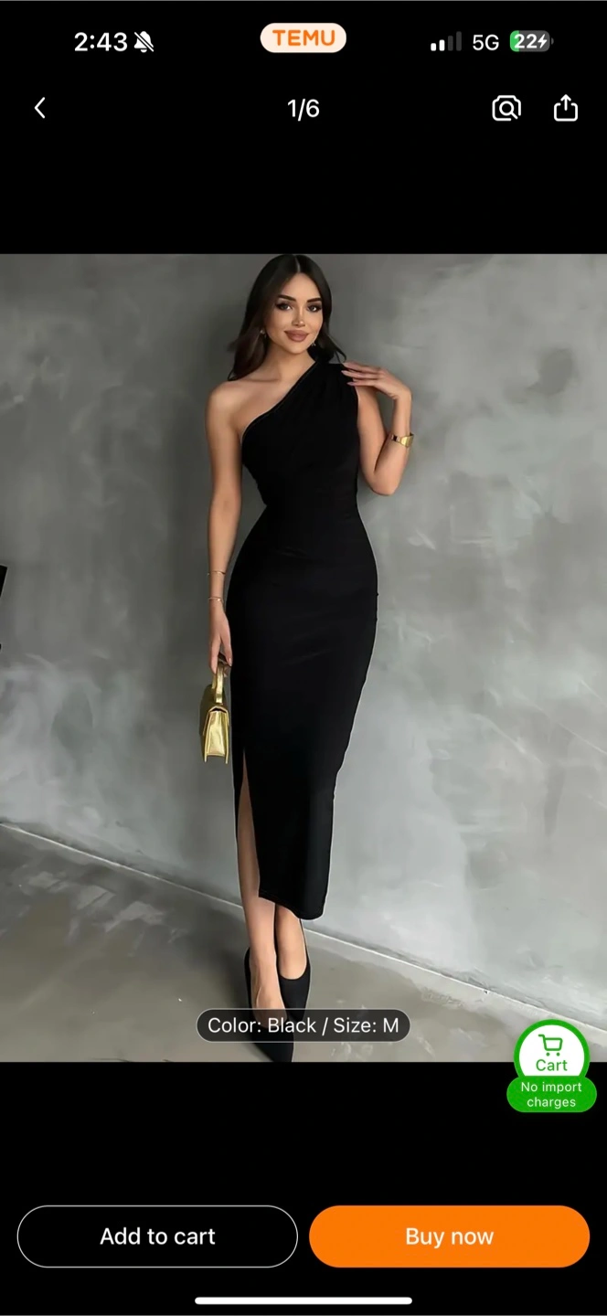 Elegant black midi dress. One-shoulder design. Side slit. Bodycon fit. Perfect for special occasions or a night out.