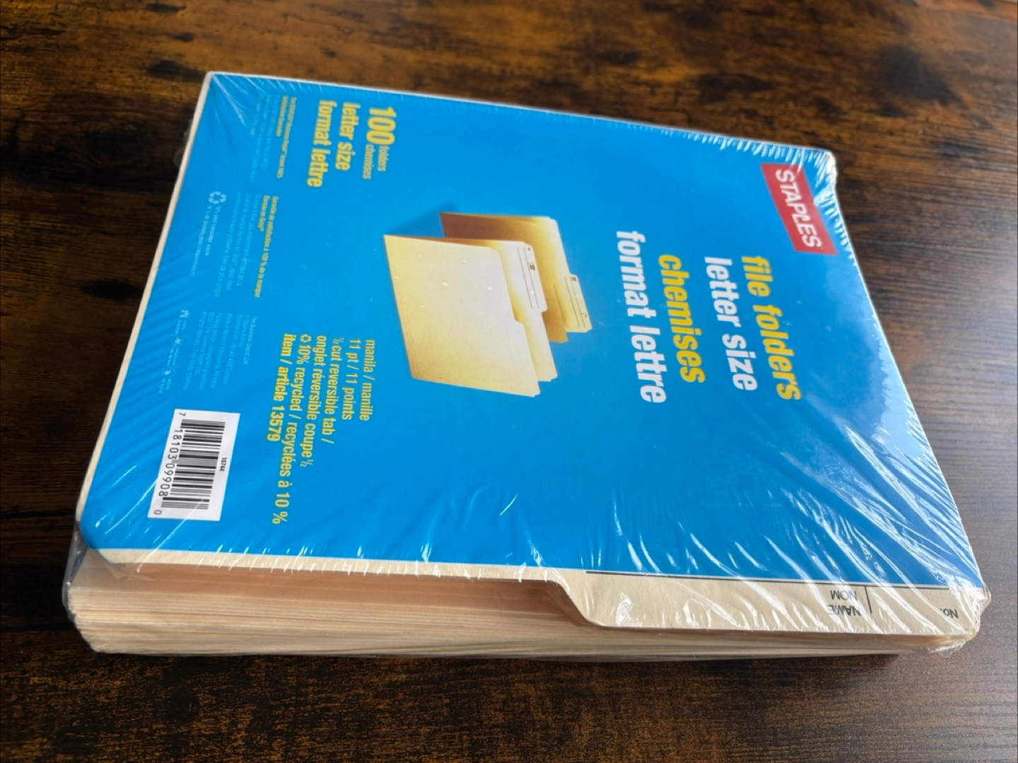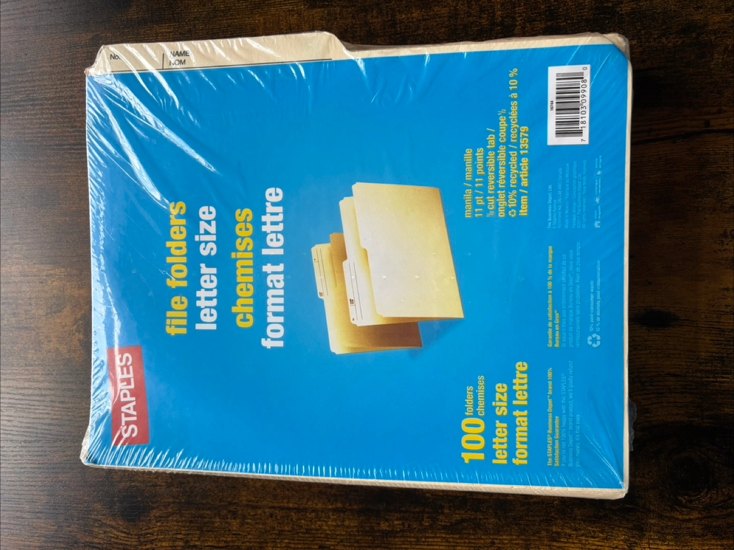 Buy & Sell100 Staples Letter Size File Folders100 Staples Letter Size File Folders$5Manila file folders. 11 pt./11 points. 1/5 cut. Double-tab. Reversible. 10% recycled. Letter size.ConditionNewWHERE TO MEET700 Humberwood BlvdView MapSELLERverifiedKeithW Humber1095 reviews0 chats·0 favorites·4 viewsSEND CHAT TO SELLERHi Keith! I’m interested in your listing.Hi Keith! I’m interested in your listing.Get the Karrot app to chatSign In to chat