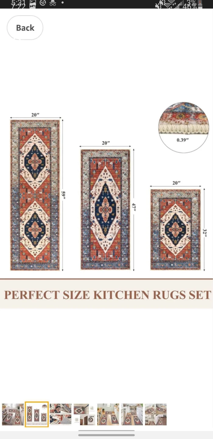 Brand New Pauwer Kitchen Rugs Sets of 3 Non Slip Washable Kitchen Mats for Floor Farmhouse Kitchen Floor Mat Runner Rug Boho Kitchen Sink Rug Carpet for Kitchen Hallway Laundry Room, Rust