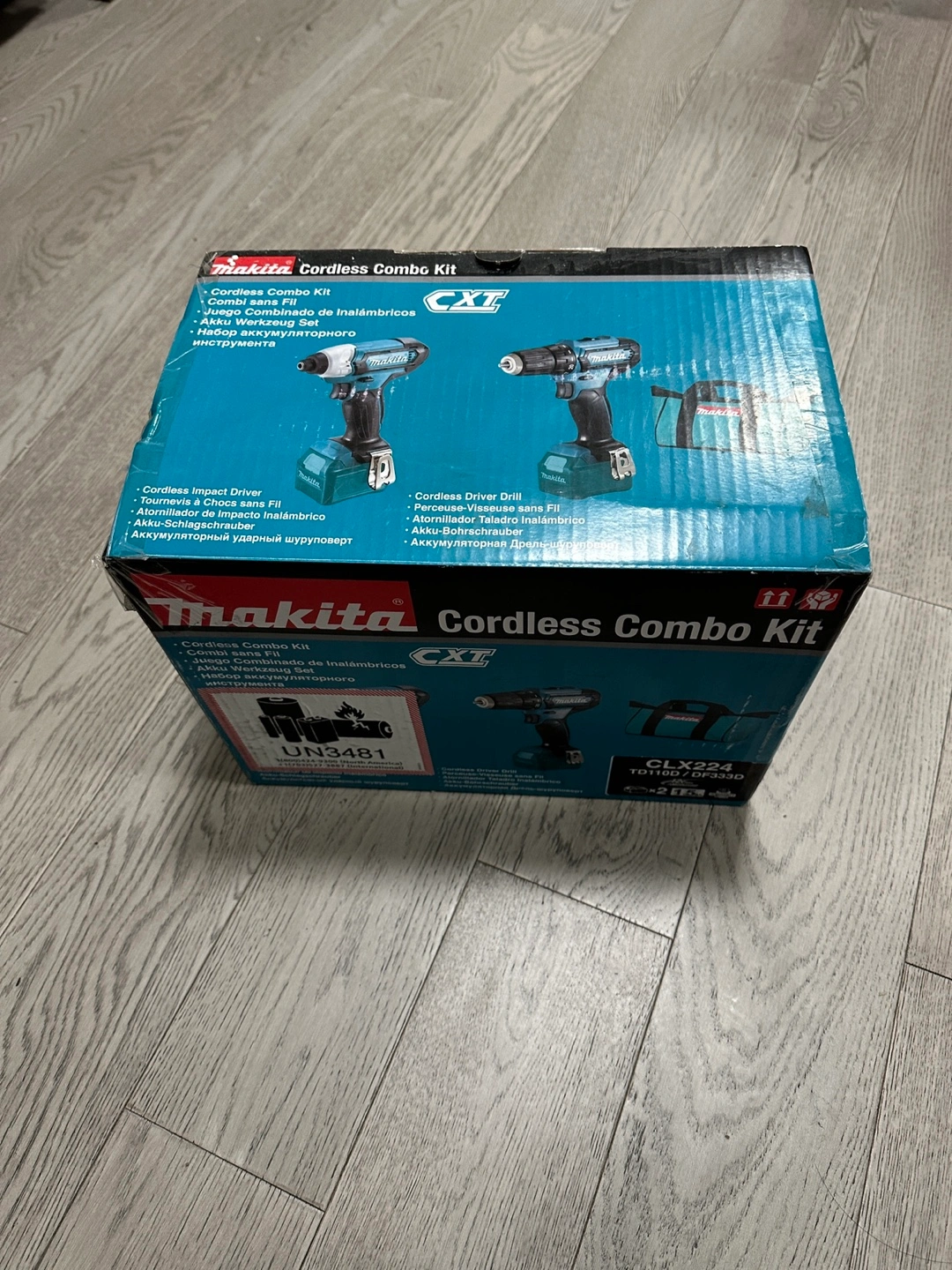 Makita cordless drill and impact driver combo kit. Includes two batteries and a carrying bag. Comes with a original box. Driver is brand new not even used once. Impact is used for couple of months. Works perfectly fine.