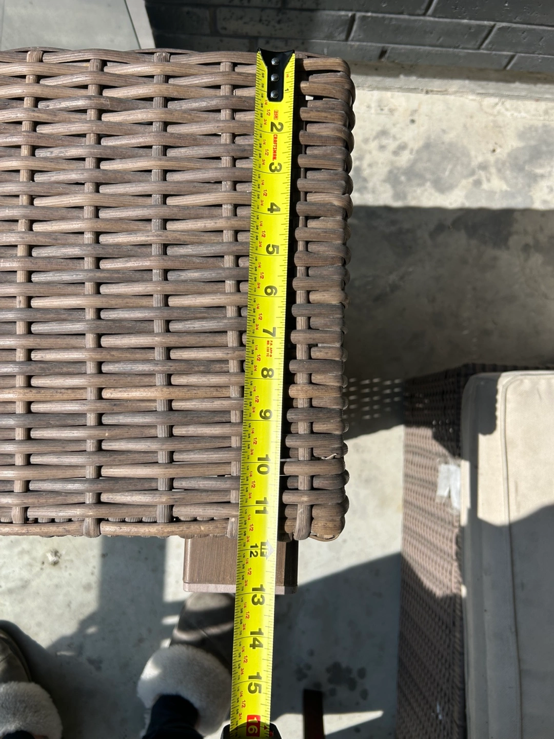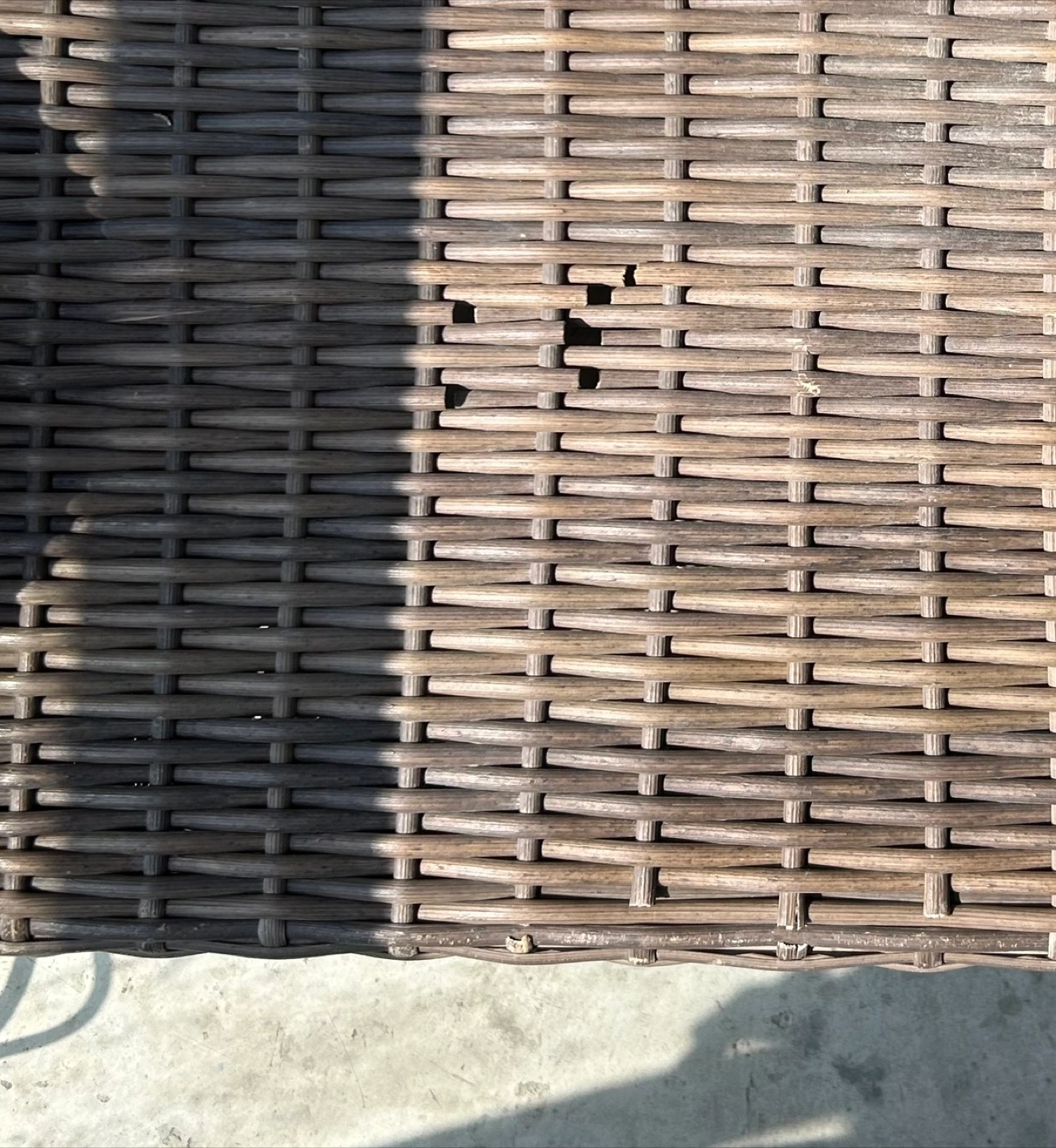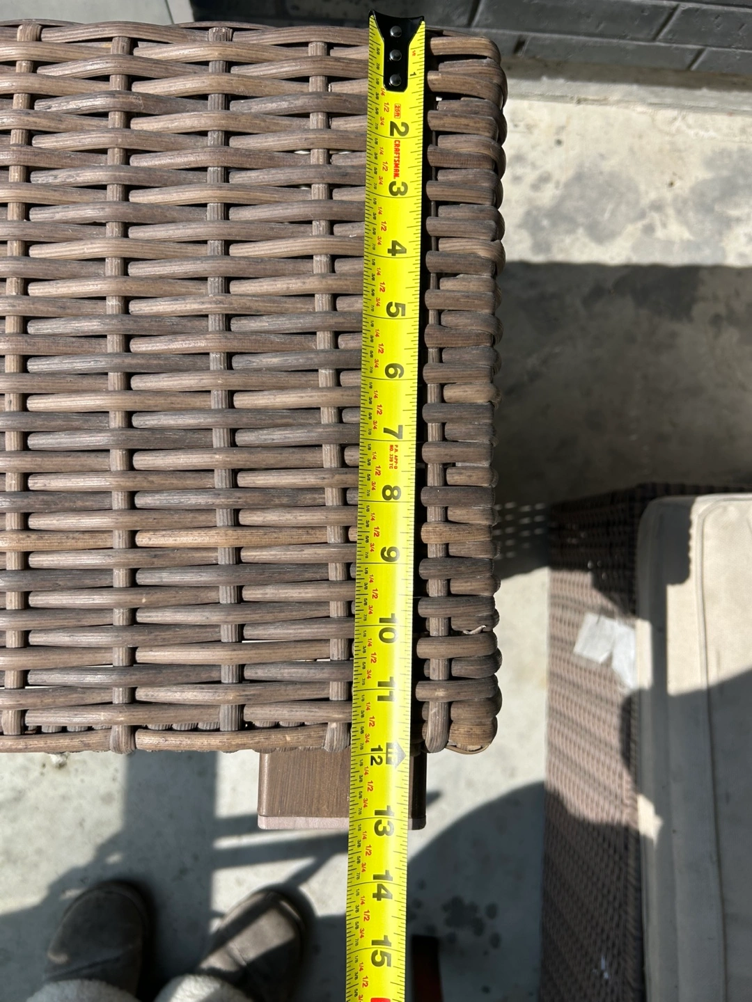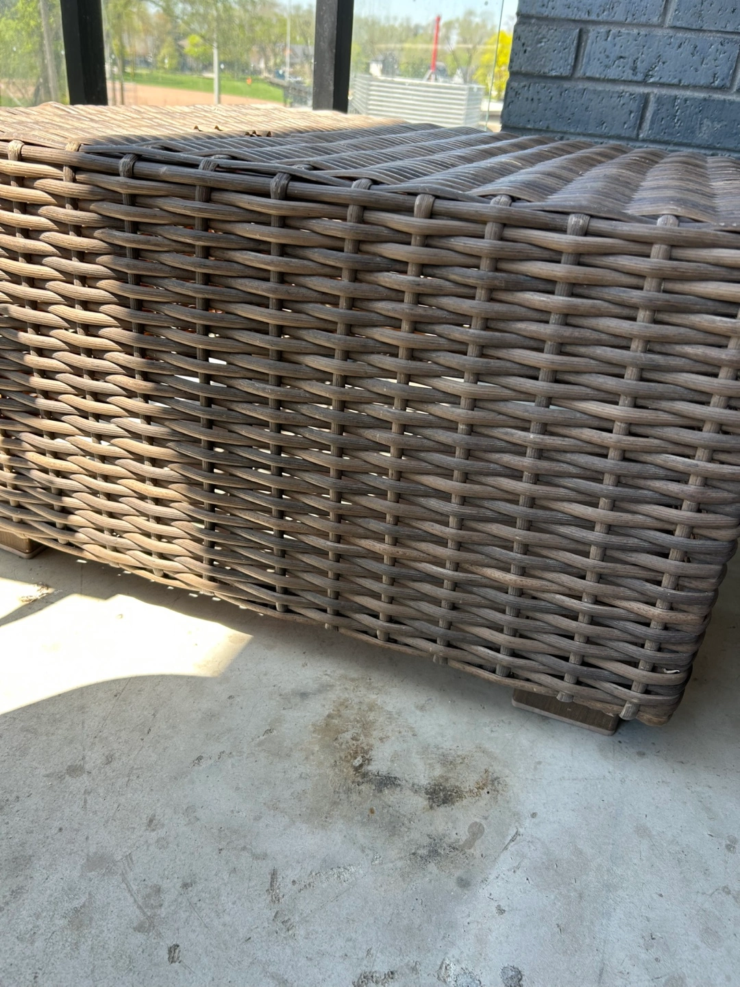 Square outdoor ottoman. Brown wicker. Solid construction, heavy duty, strong and sturdy. Perfect for patio or balcony.
