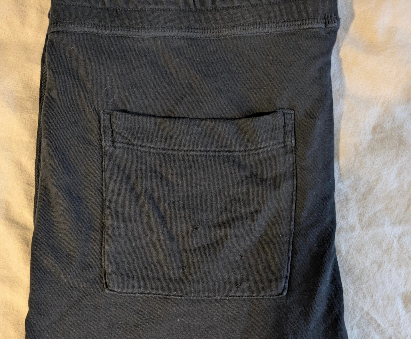Soft cotton. See last photo of imperfections on the pocket (the other pocket has no holes).