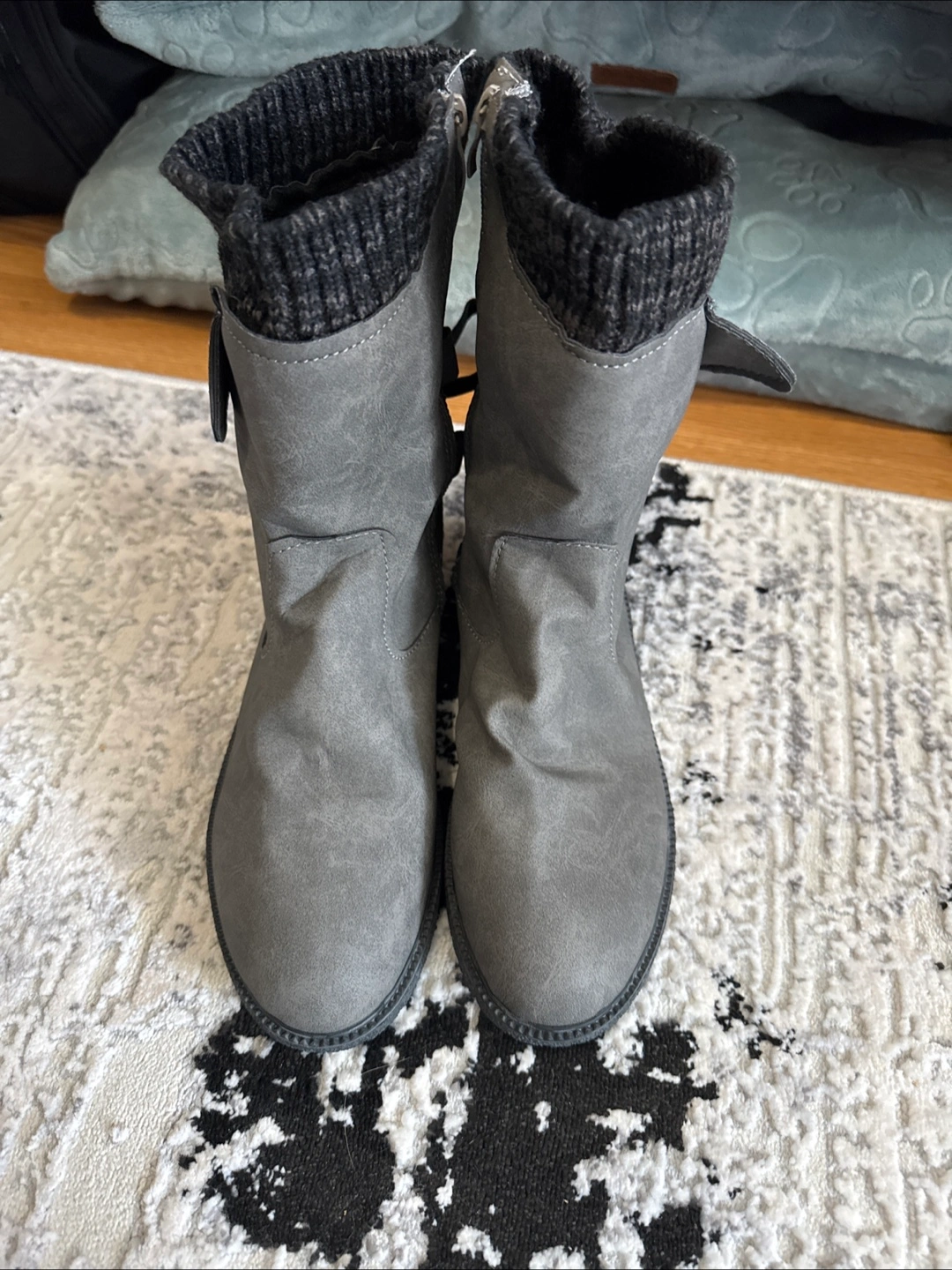 Women's grey ankle boots. Size 41. Knitted cuff detail. Lace-up accents. Brand new. Bought and they were too narrow and small for my foot. Couldn’t return.