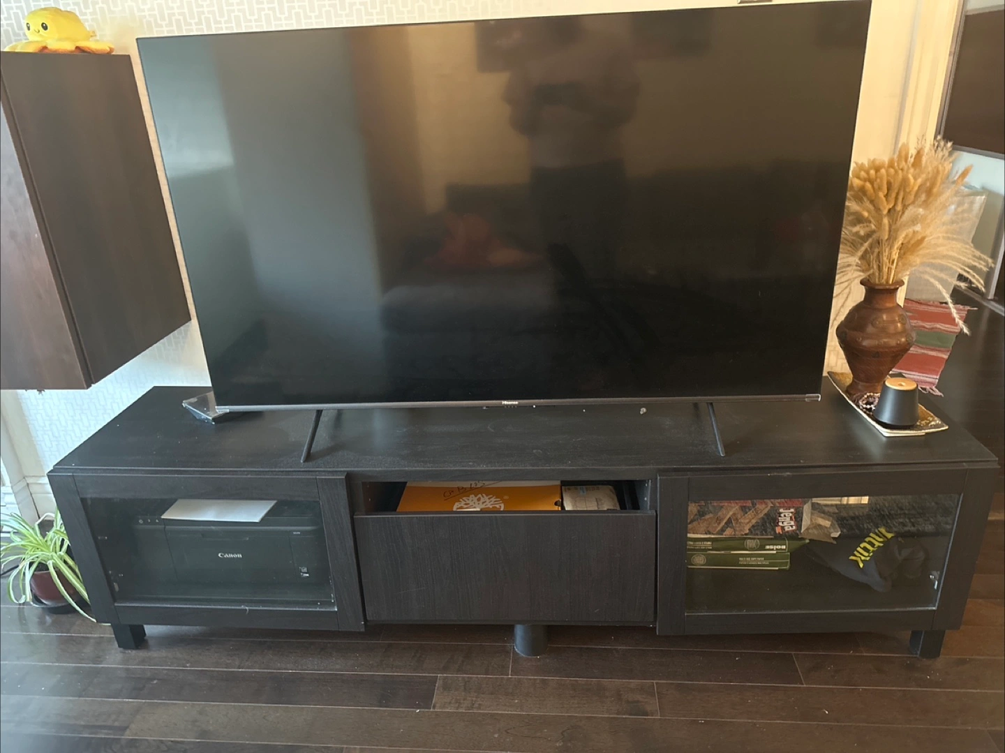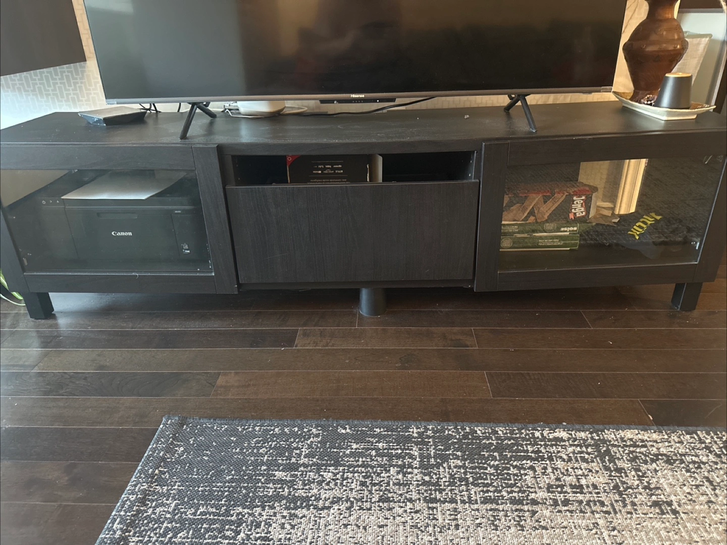 Buy & SellBlack TV Stand with StorageBlack TV Stand with Storage$70Dark brown/black TV stand. Features two glass-front cabinets, one drawer, and open shelving. Plenty of space for electronics and media. Good condition.ConditionGoodWHERE TO MEETGreenwood schoolView MapSELLERverifiedSamreenDavisville Village24424 reviews3 chats·1 favorites·134 viewsSEND CHAT TO SELLERHi Samreen! I’m interested in your listing.Hi Samreen! I’m interested in your listing.Get the Karrot app to chatSign In to chat