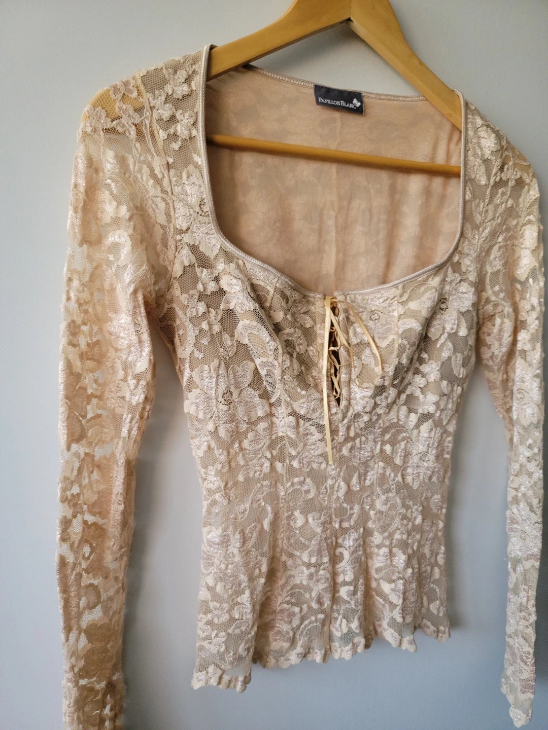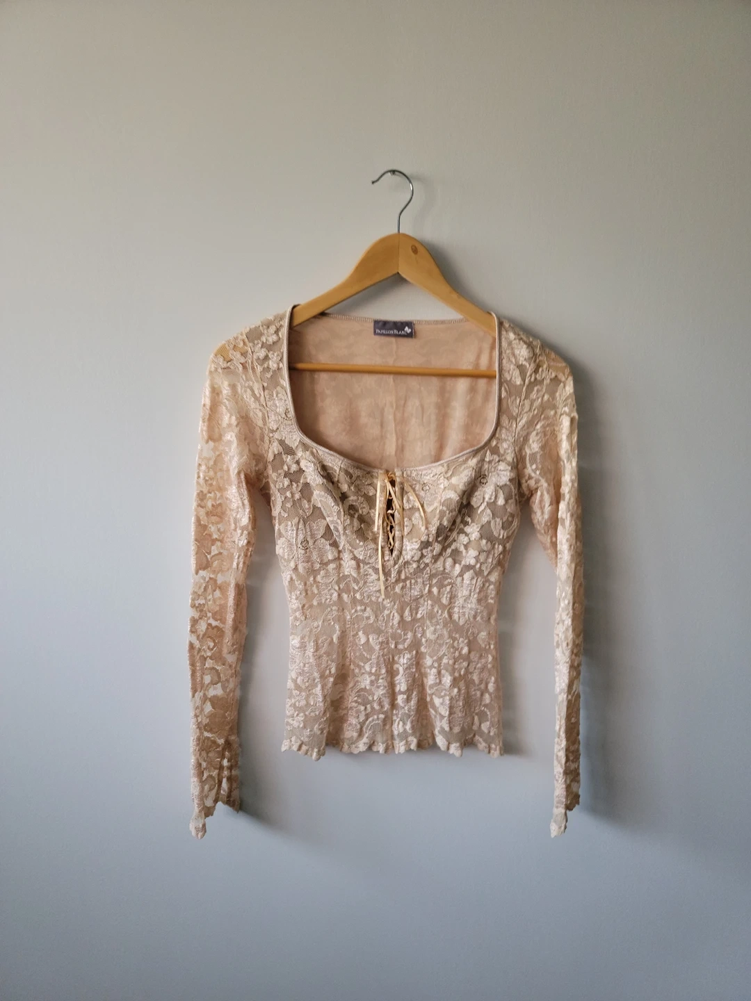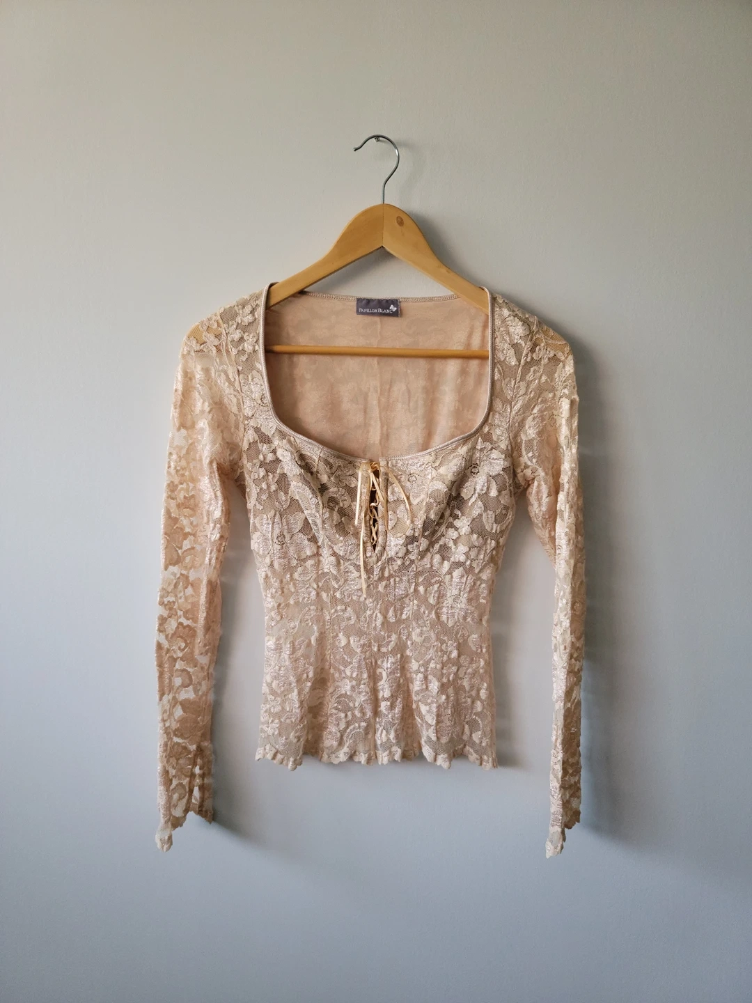 Papillon Blanc Nude Lace Long Sleeve Top - Size S