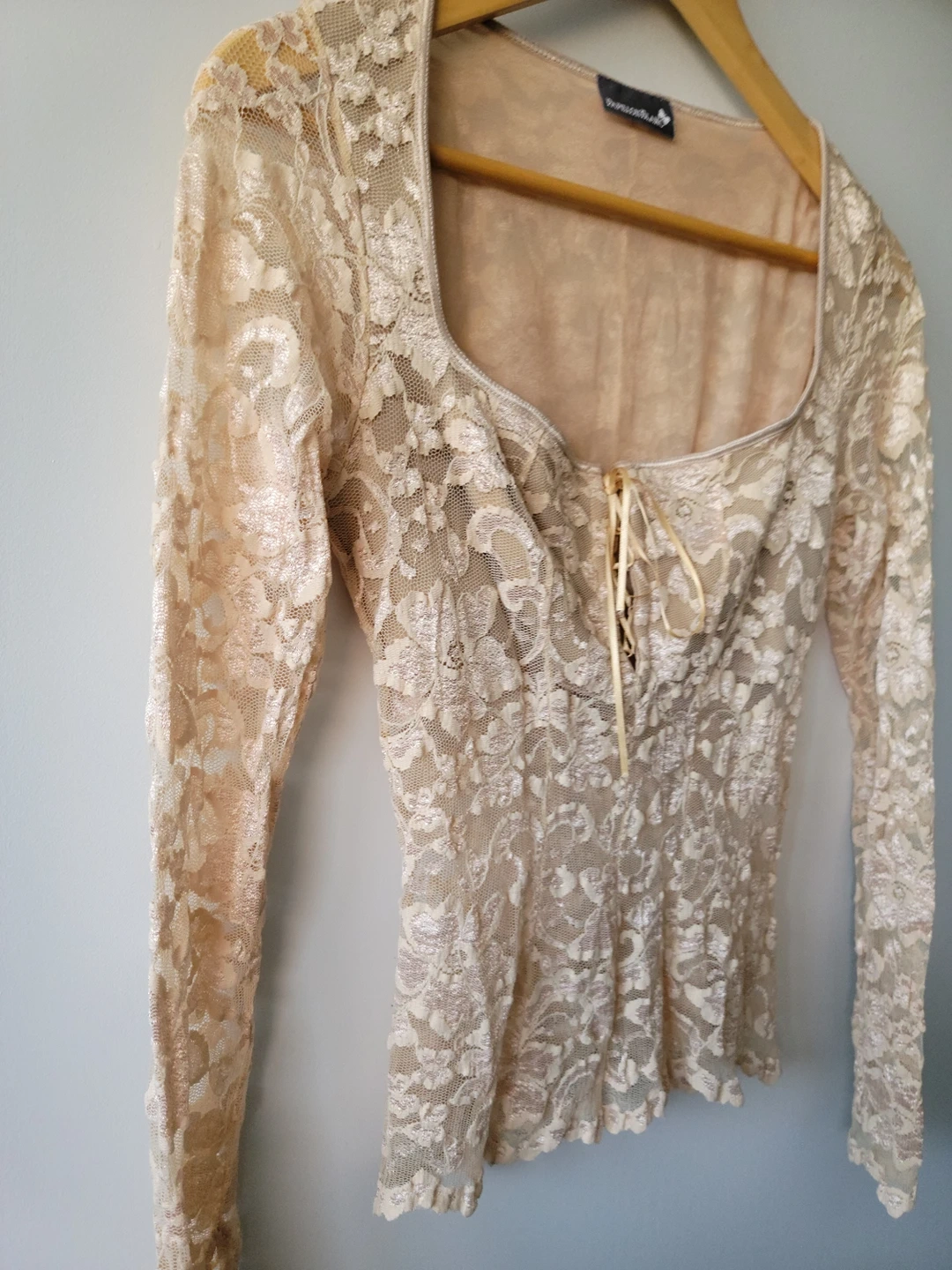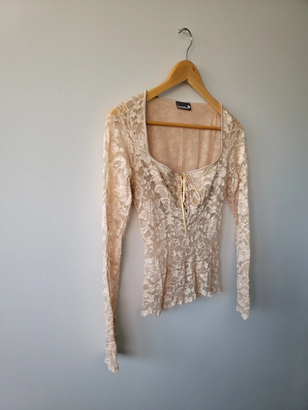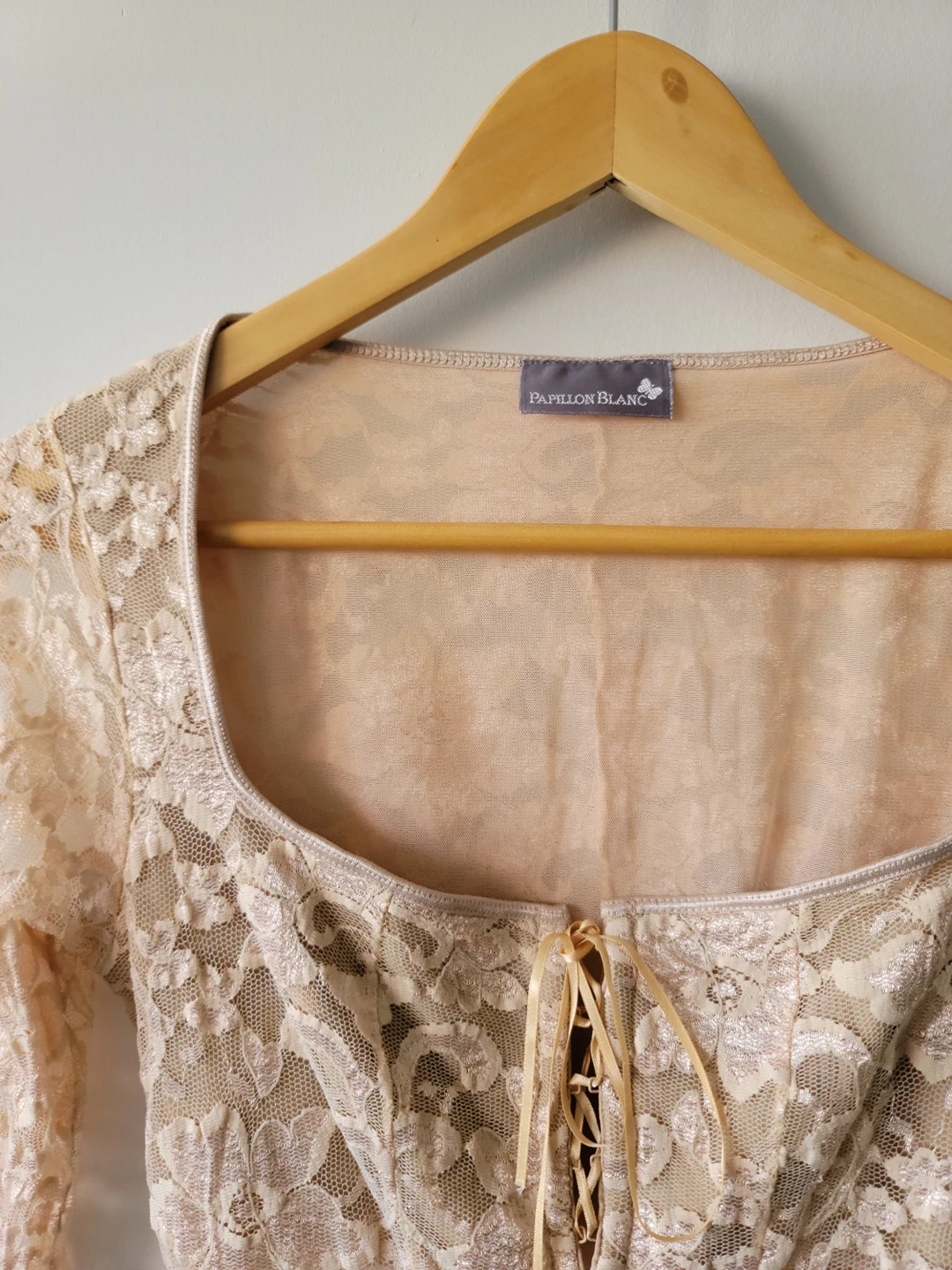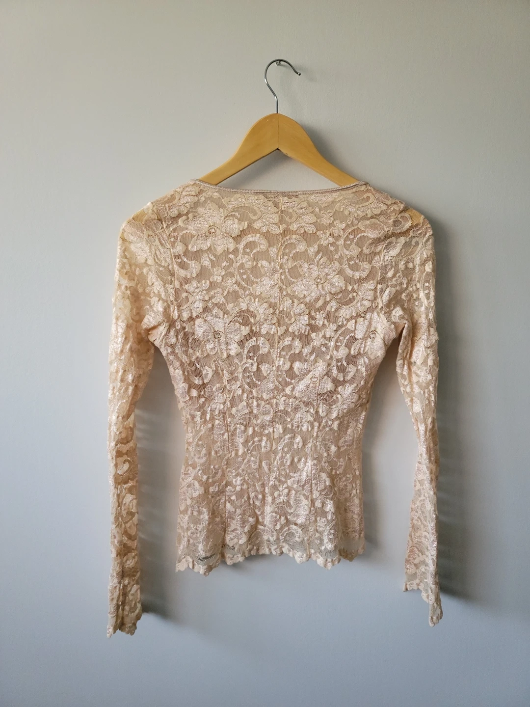 Papillon Blanc Nude Lace Long Sleeve Top - Size S