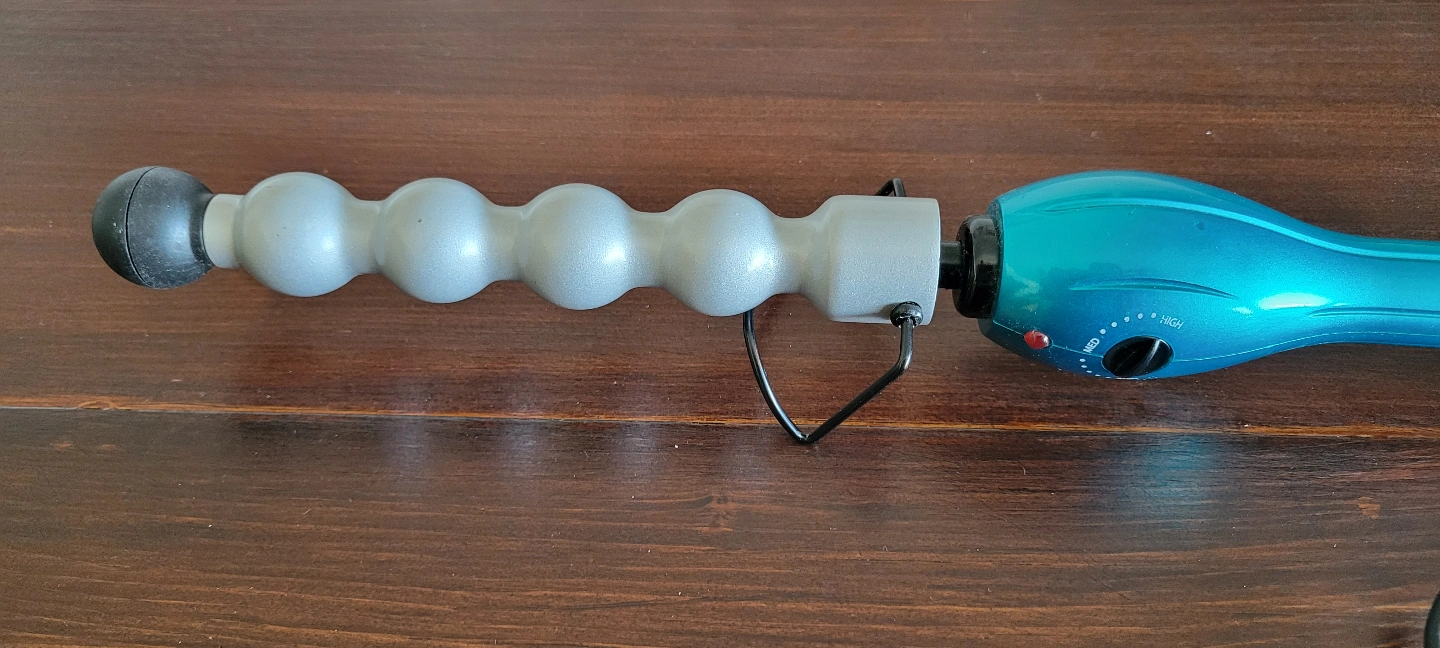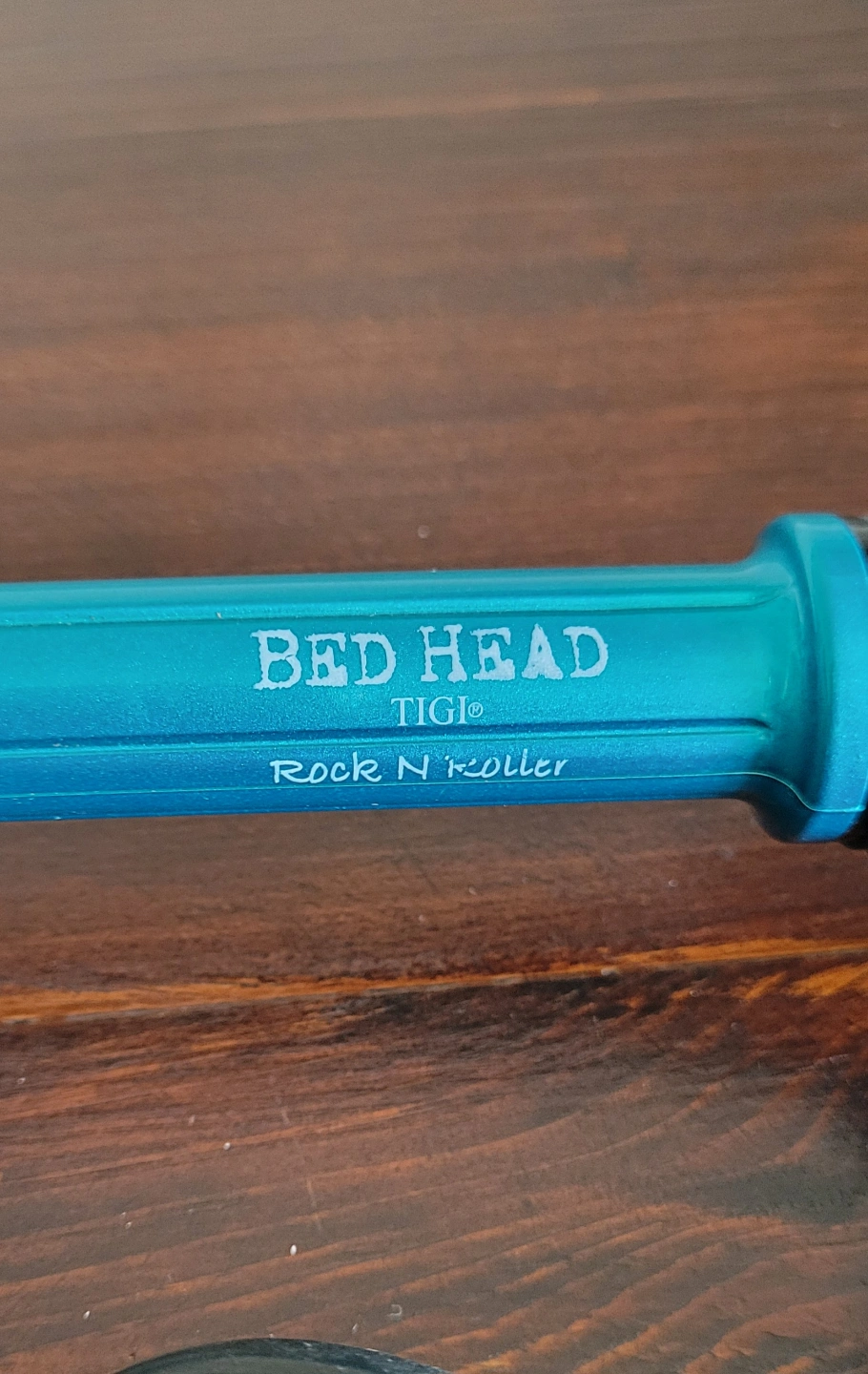 Used but in excellent condition TIGI Bed Head Rock N Roller curling iron. Teal blue body, silver curling barrel. Three heat settings: low, medium, high. Includes power cord.