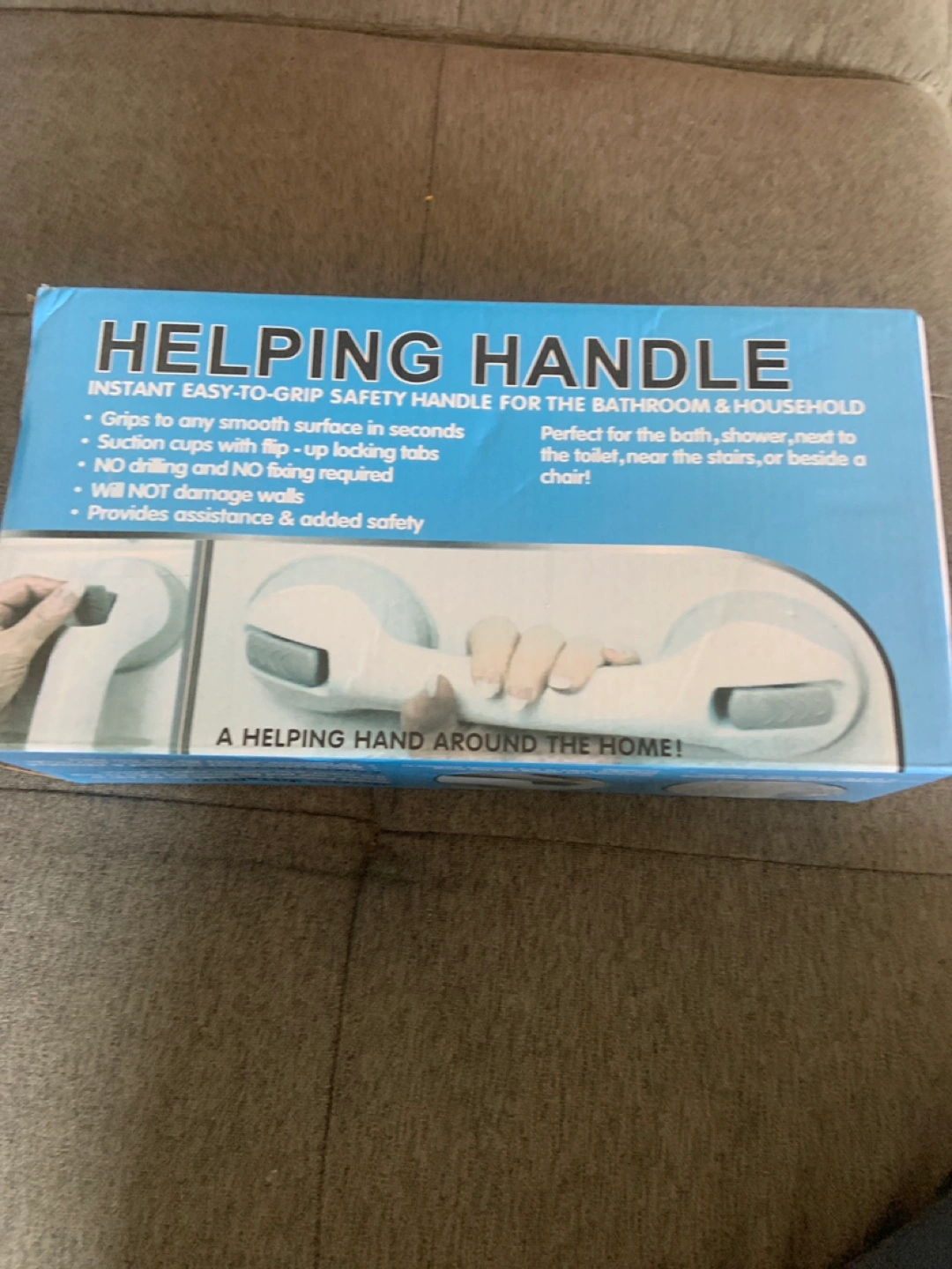 New never used!! Bathroom and household safety handle. Grips any smooth surface. Suction cups with flip-up locking tabs. No drilling or fixing required. Will not damage walls. Provides assistance and added safety.
