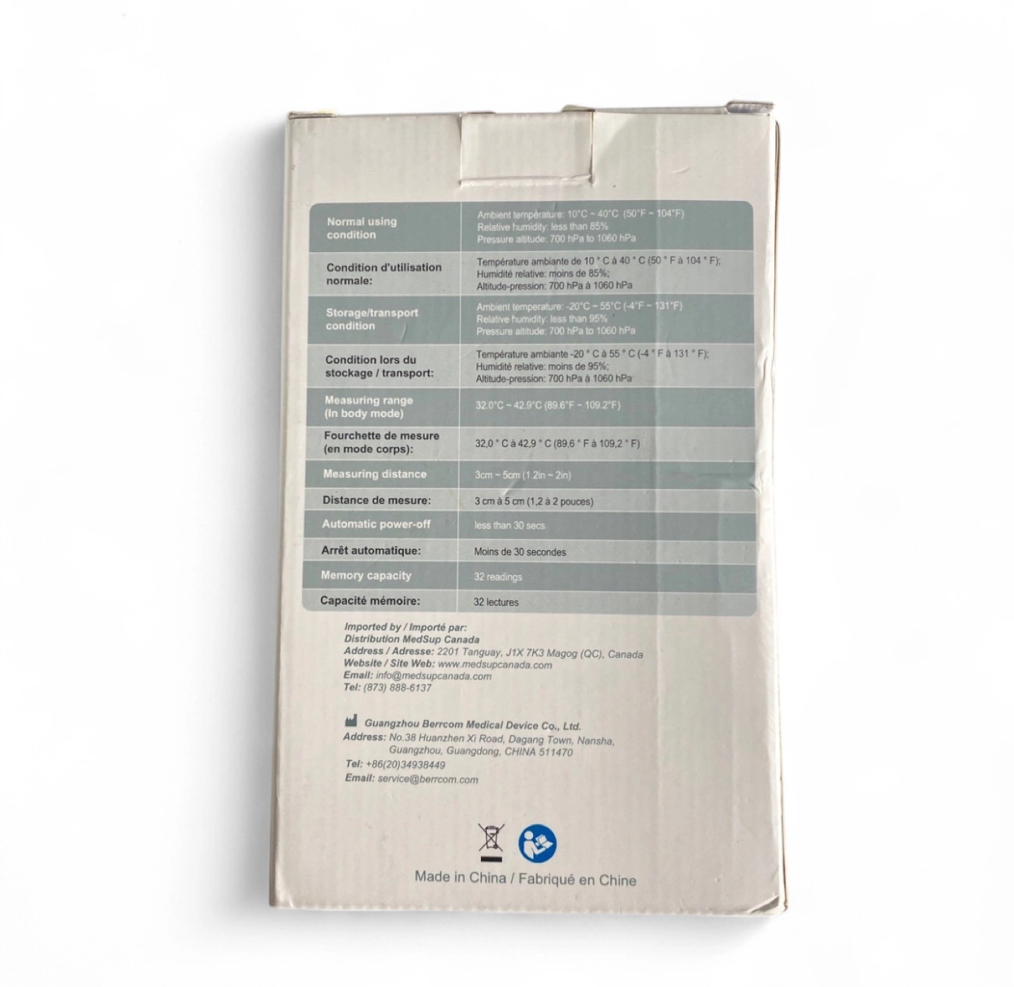 Measuring range (In body mode): 32.0 degrees Celcius - 42.9 degrees Celcius (89.6 degrees Fahrenheit - 109.2 degrees Fahrenheit)