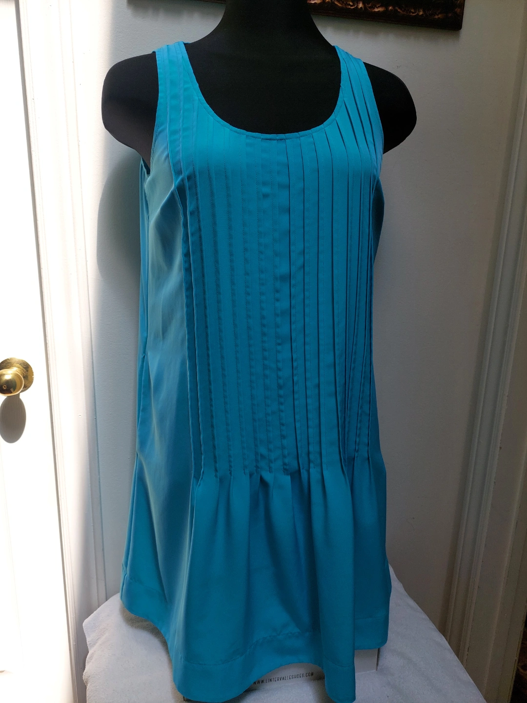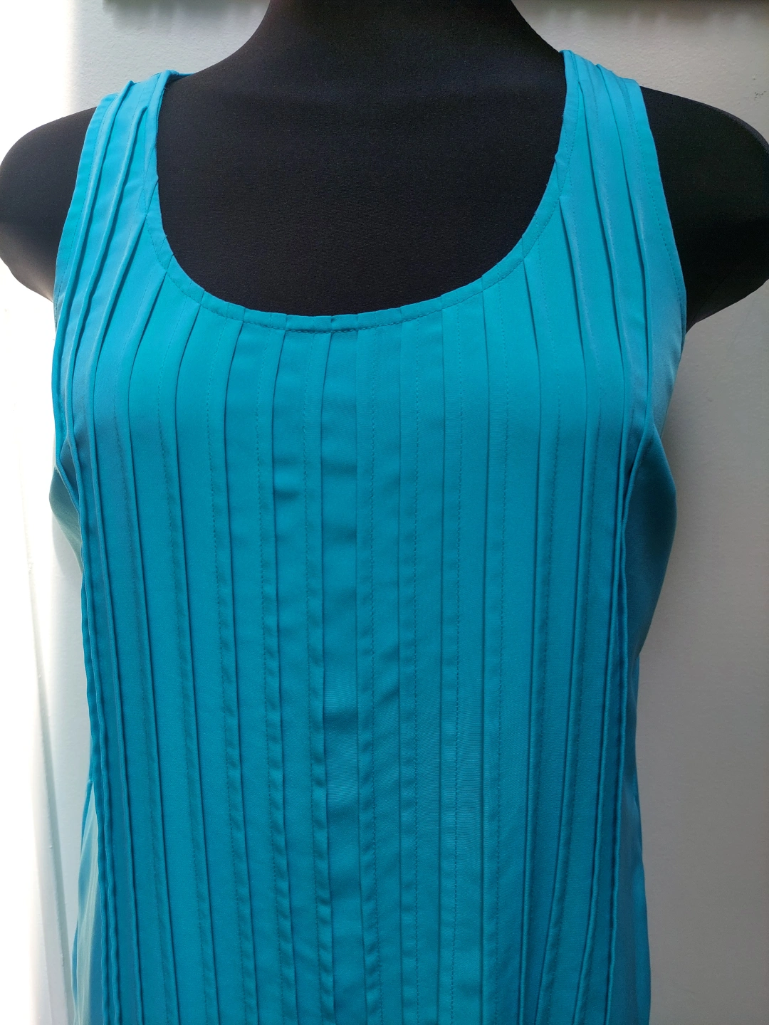 Beautiful teal sleeveless top. Pleated detail. Relaxed fit. Side seam pockets.