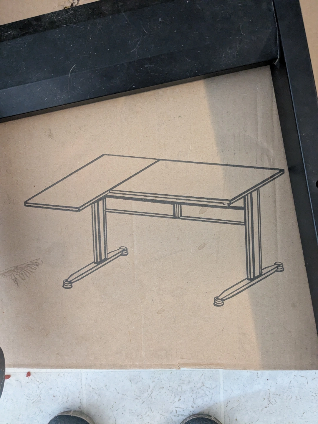 Black L-shaped computer desk. New in box. Assembly required. Dimensions: 43.3x22.8x4.5 inches. Weight: 21 kg / 46.3 lbs.