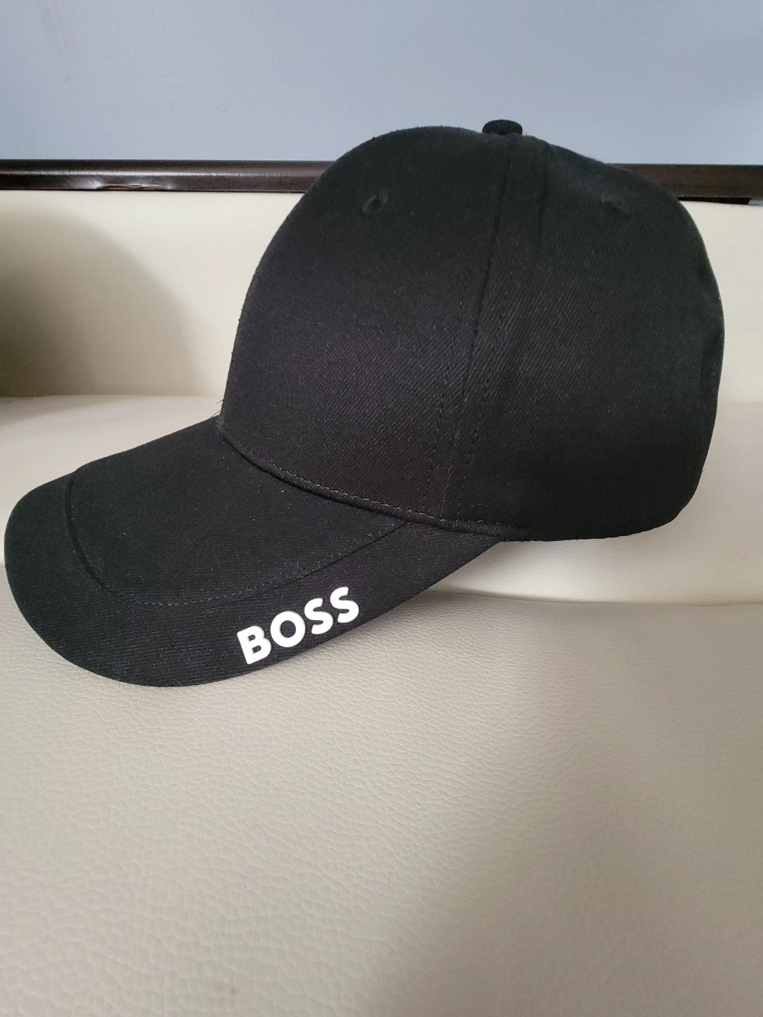 Men's black baseball cap. Features a white BOSS logo on the side. Adjustable back strap.