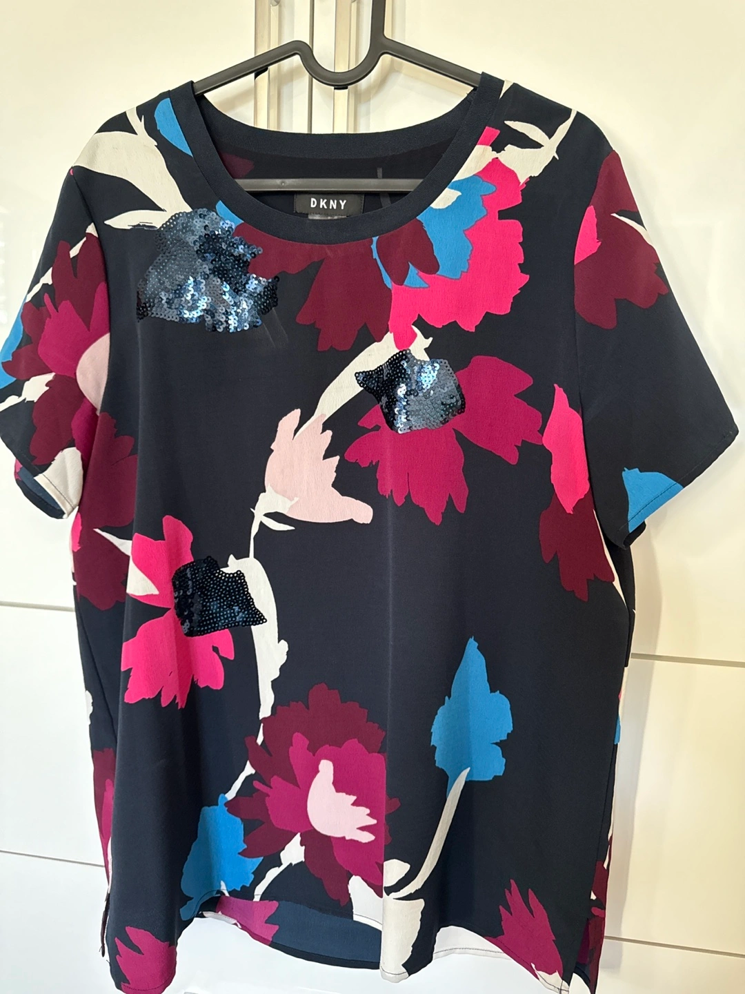 DKNY Floral Print Sequined Top