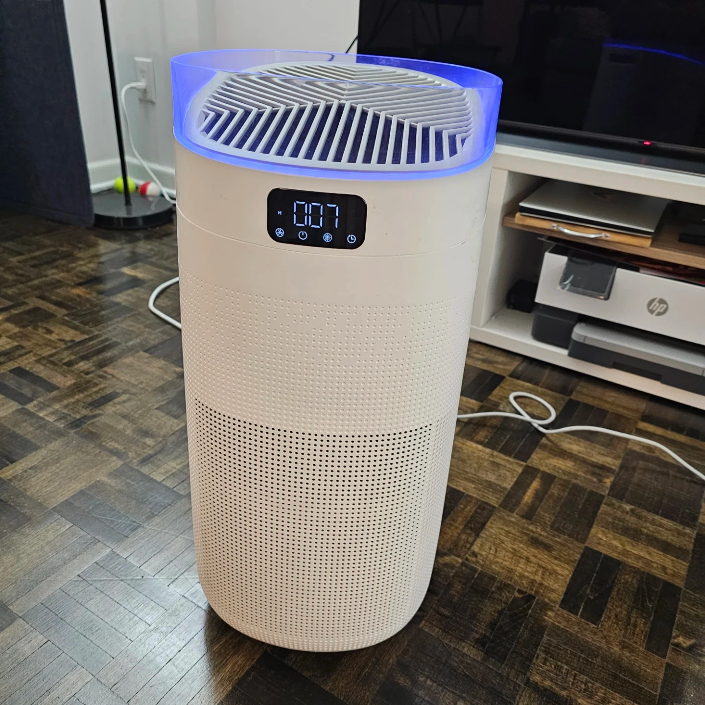 It has wifi connectivity via mobile app. HIPPA compliant air filter. Perfect if you have pets or need extra safety if you have kids.