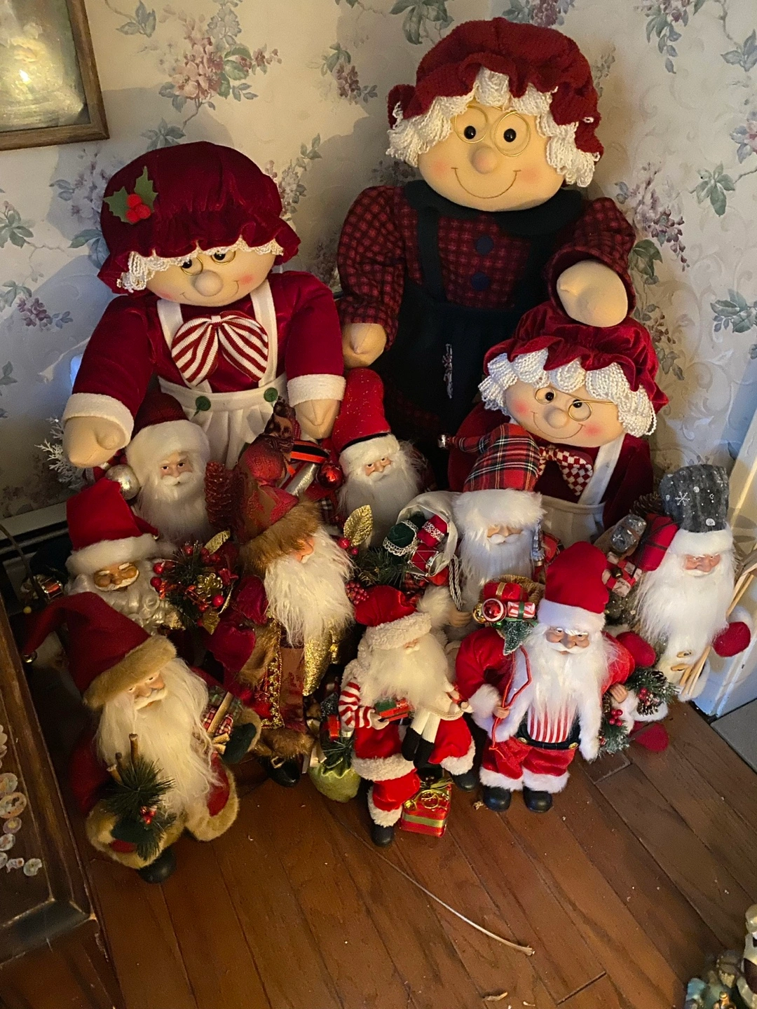 Bring classic holiday charm to your home with this delightful collection of 12 vintage Santa Claus decorations. Each figure showcases unique details, from traditional red suits and plush beards to festive accessories like gift bags, greenery, and musical instruments. Perfect for collectors or anyone looking to add timeless Christmas spirit to their holiday décor.